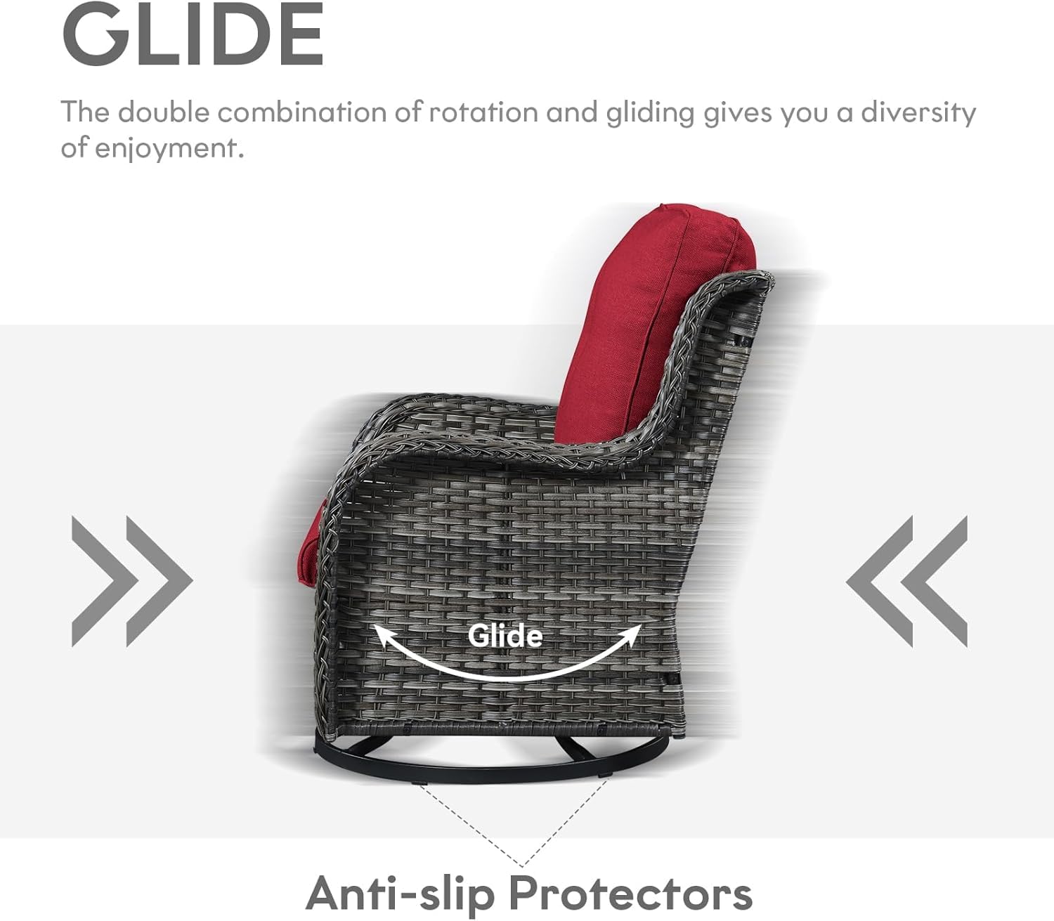 - 2.Elegant Swivel Glider Chair: Soothe away stress in our unique wicker swivel rocker glider chairs that combine the relaxing benefits of glider with the soothing motion of 360 swivel. Designed for pure relaxation, these chairs elevate your outdoor comfort, adding a touch of luxury to your space.