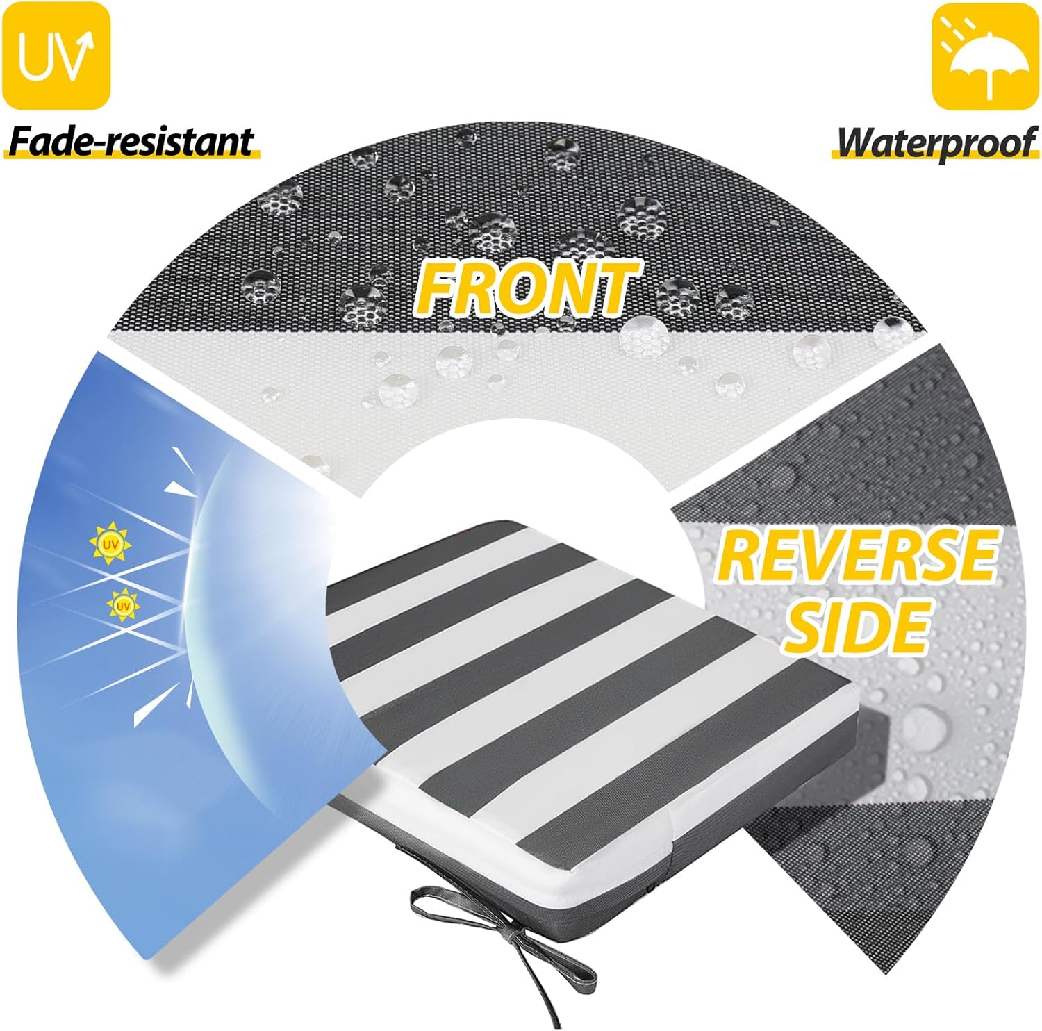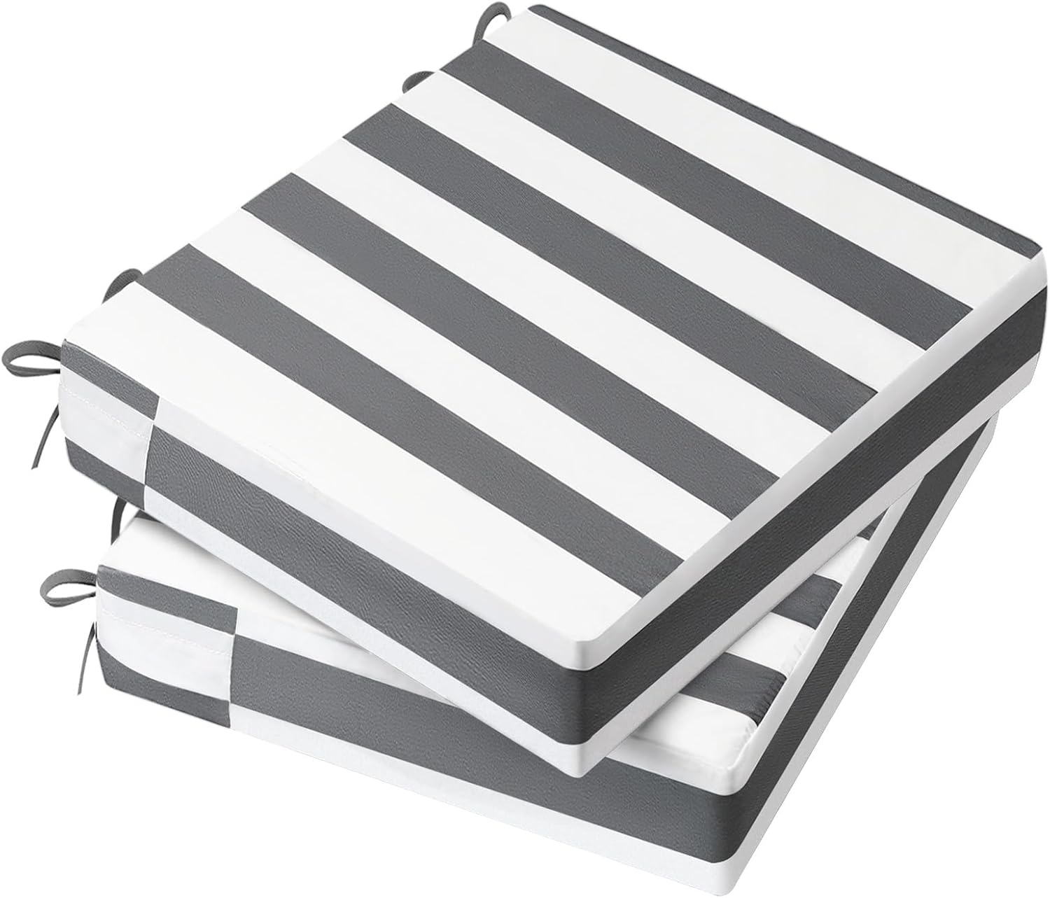 AAAAAcessories Outdoor Seat Cushions for Chairs, Waterproof, Fade-Resistant Patio Furniture Replacement Cushions, 18.5" x 16" x 3", Set of 2, Gray Cabana Stripe