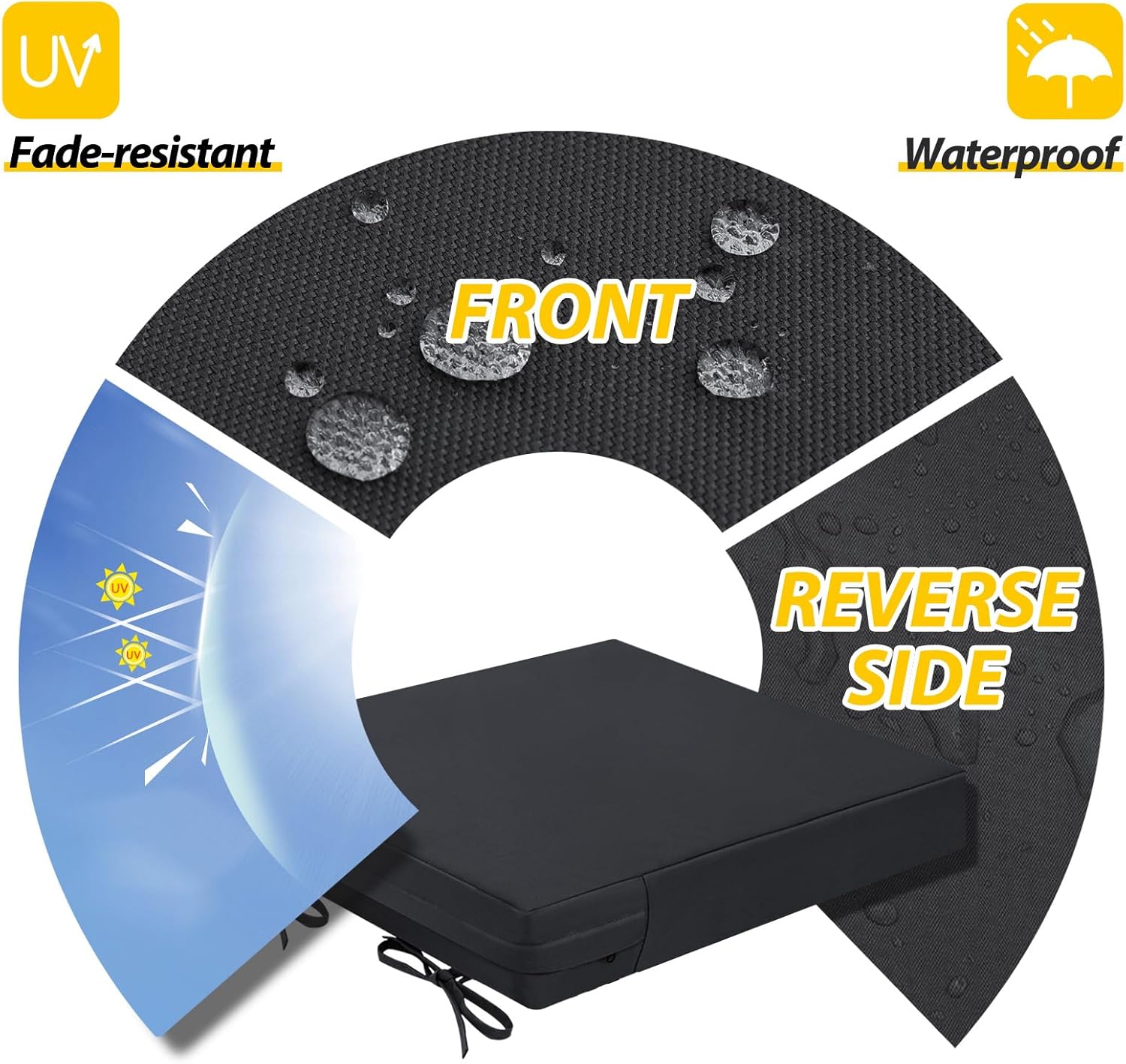 • Waterproof & Removable Cover: Durable, breathable polyester with a waterproof coating, UV protection, and fade resistance for lasting outdoor use. The zippered cover allows easy cleaning and replacement, with hidden zippers for a seamless look