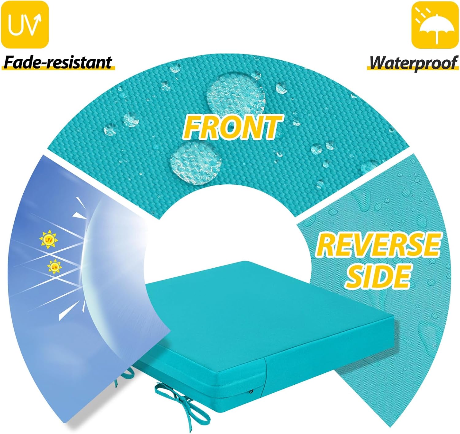 AAAAAcessories Outdoor Seat Cushions for Chairs, Waterproof, Fade-Resistant Patio Furniture Replacement Cushions, 20" x 20" x 3", Set of 2, Turquoise Blue