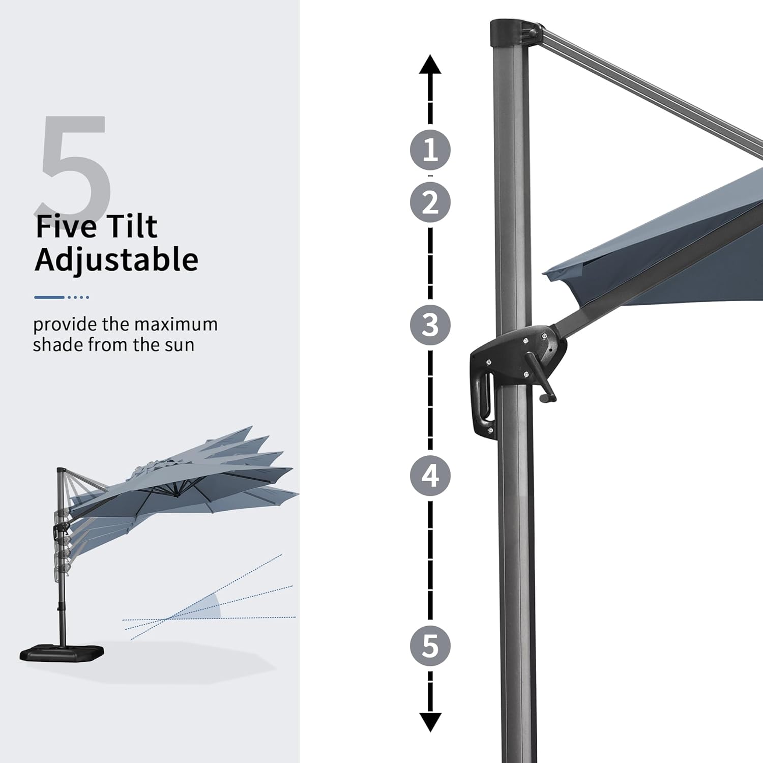 PURPLE LEAF 11 Feet Patio Umbrella Outdoor Cantilever Round Umbrella Aluminum Offset Umbrella with 360-degree Rotation for Garden Deck Pool Patio Light Grey