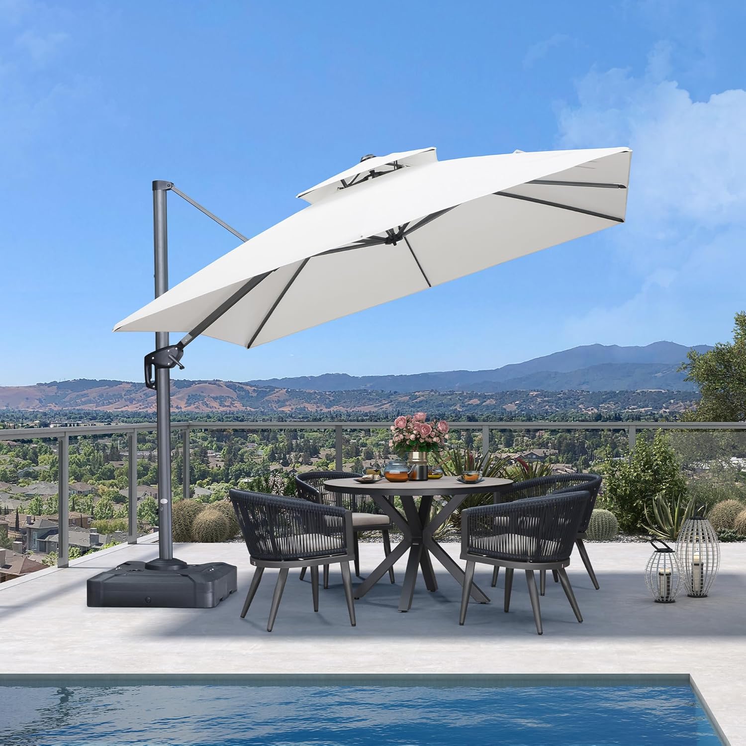 - 360° Rotation: This outdoor umbrella provides 360° rotation, allowing you to adjust for maximum sun coverage throughout the day.