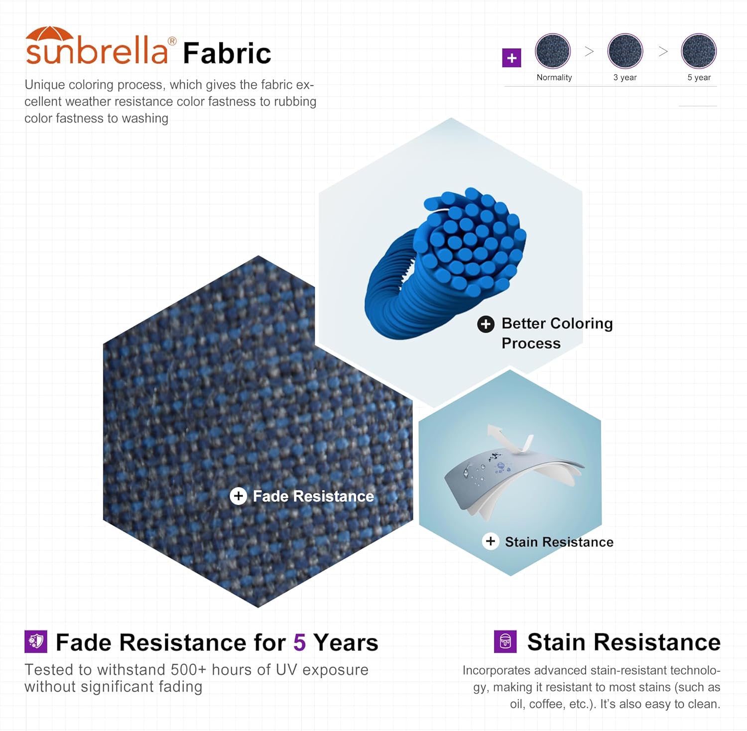- Superior UV Protection: Featuring industry-leading fabric, this cantilever umbrella blocks over 98% of UV rays to effectively reduce skin cancer risks. 5 years of fade resistance, water and stain resistance.