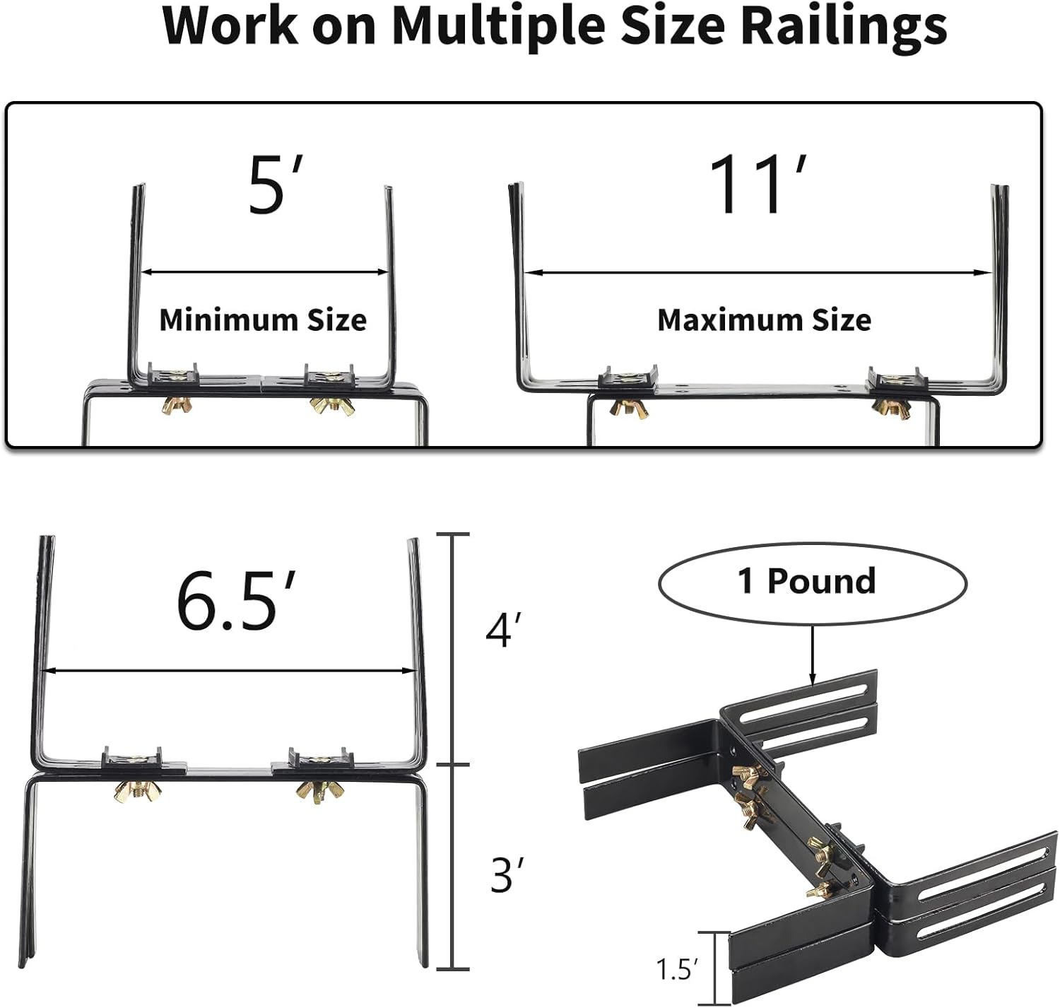 Deck Railing Planter Stand 2 Pack, Retractable Flower Box Deck Stand, 2 Pair of Deck Balcony Brackets for 5-11 inch Rail, Carbon Steel Production