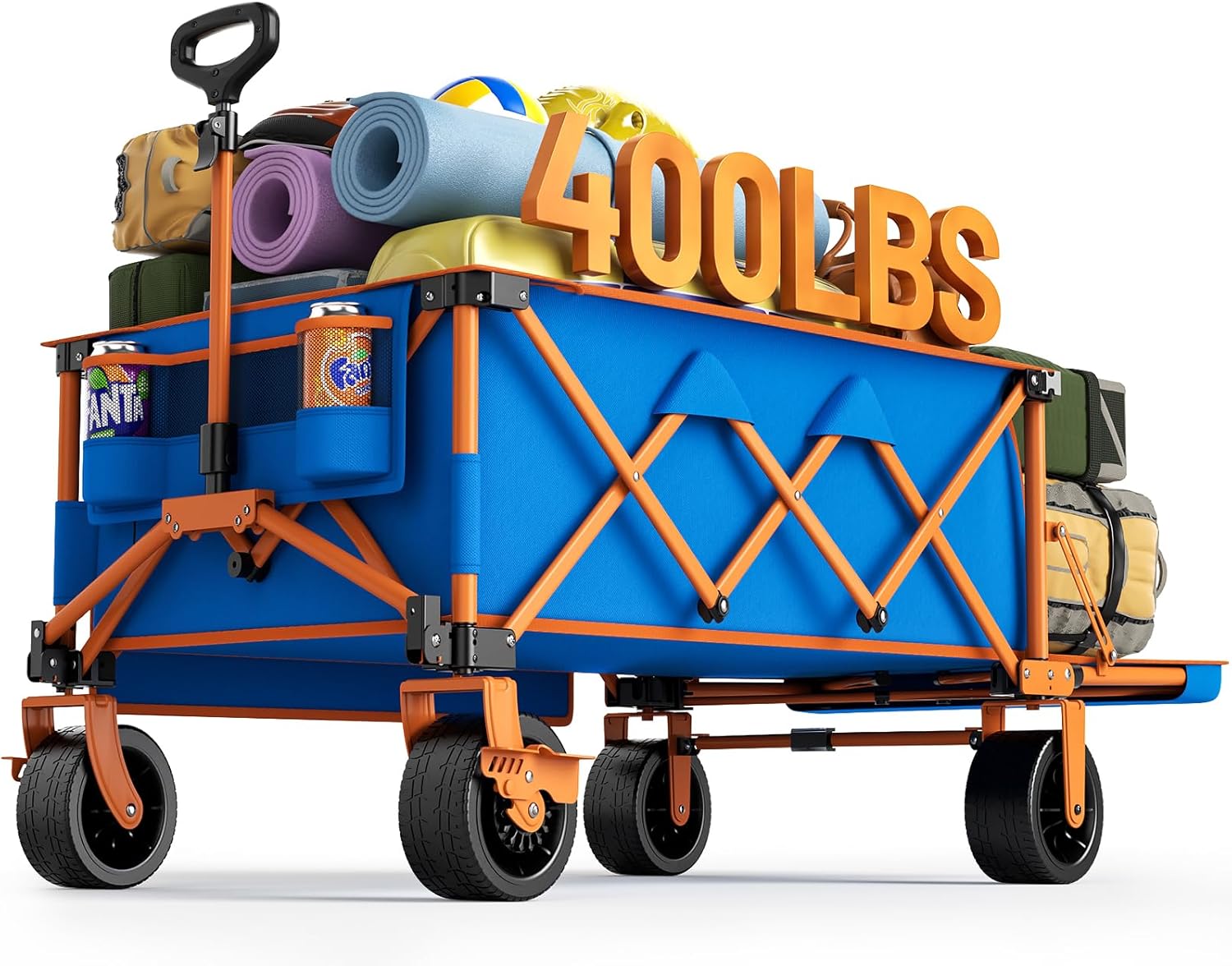 26"W Extra Wide 55"L Extra Long Beach Wagon with Tailgate,Heavy-Duty Utility Cart with 400 lbs Capacity, Compact Fold Design, Ideal for Beach, Camping, Groceries, and Outdoor Adventures