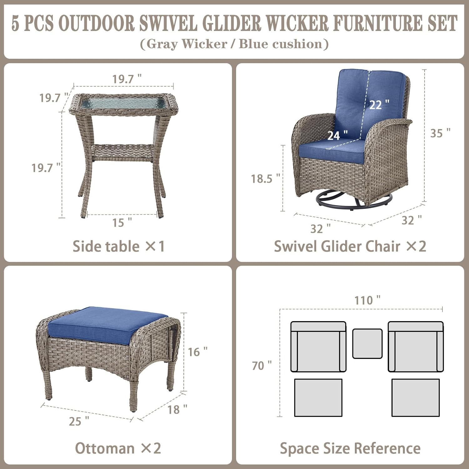 • Size : 5 PCS - Swivel Glider & Ottoman