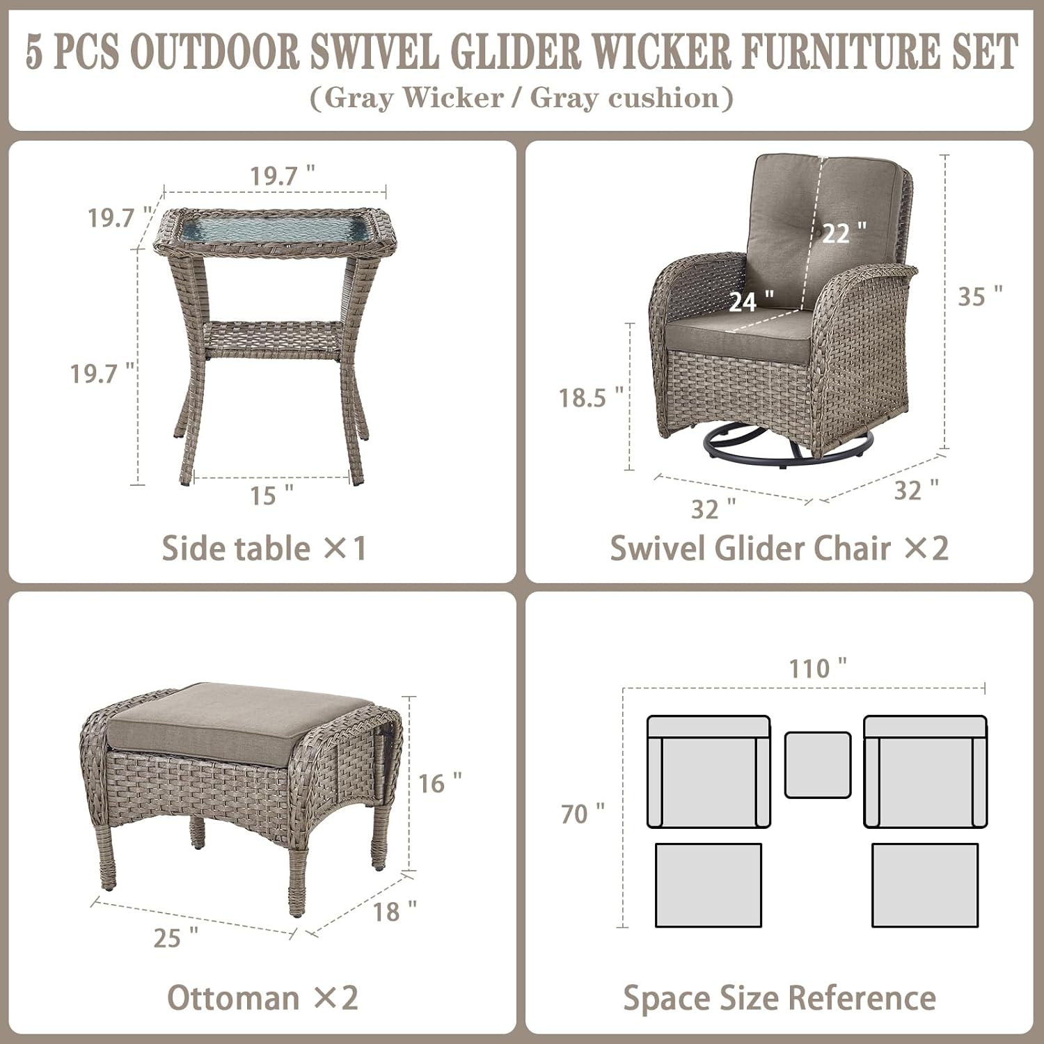 - Size : 5 PCS - Swivel Glider & Ottoman