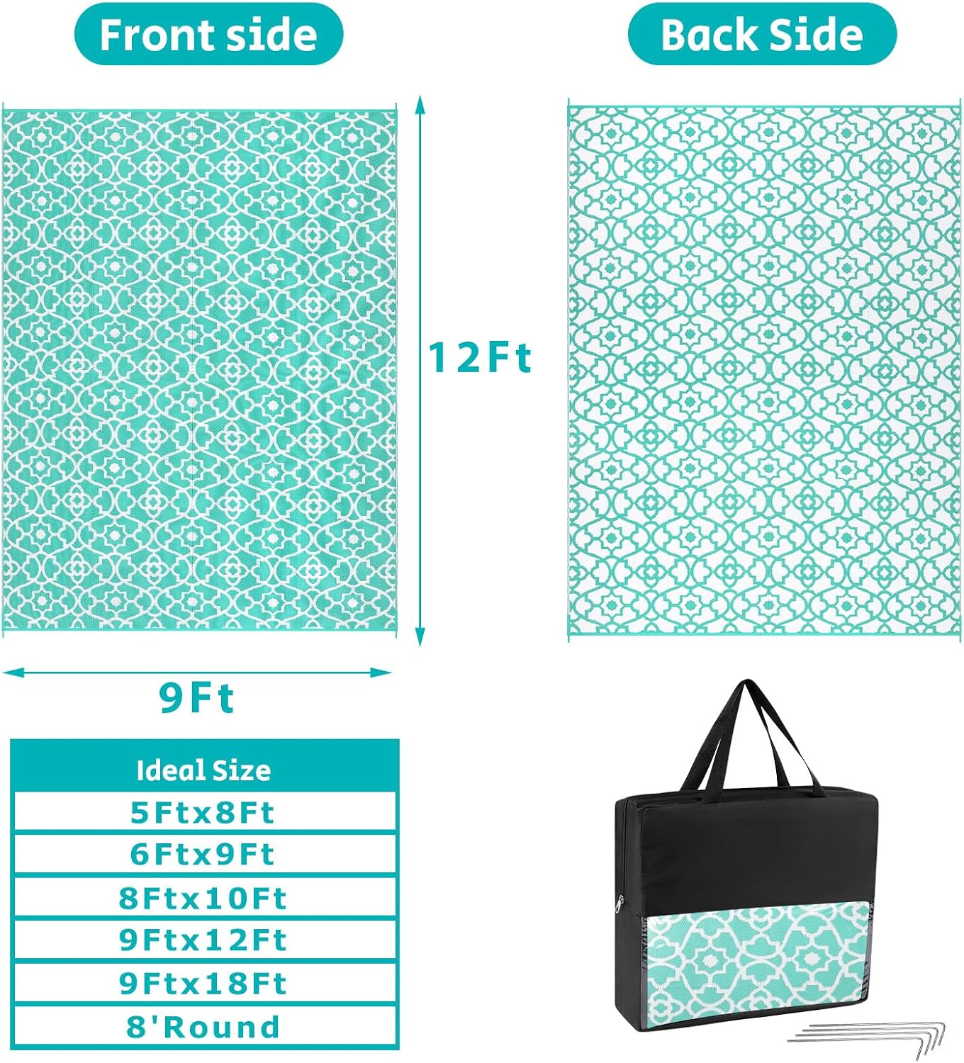 • XXXL Large Reversible Outdoor Rugs: Featuring a classic moroccan pattern on both sides, this rectangular 9x12 ft outdoor area rug allows you to instantly refresh your patio, porch, backyard, deck, RV campsite. And this outdoor deck rug is reversible, two-sided design allows you to have two different looks,both sides can blend perfectly with nature and look very full and comfortable.
