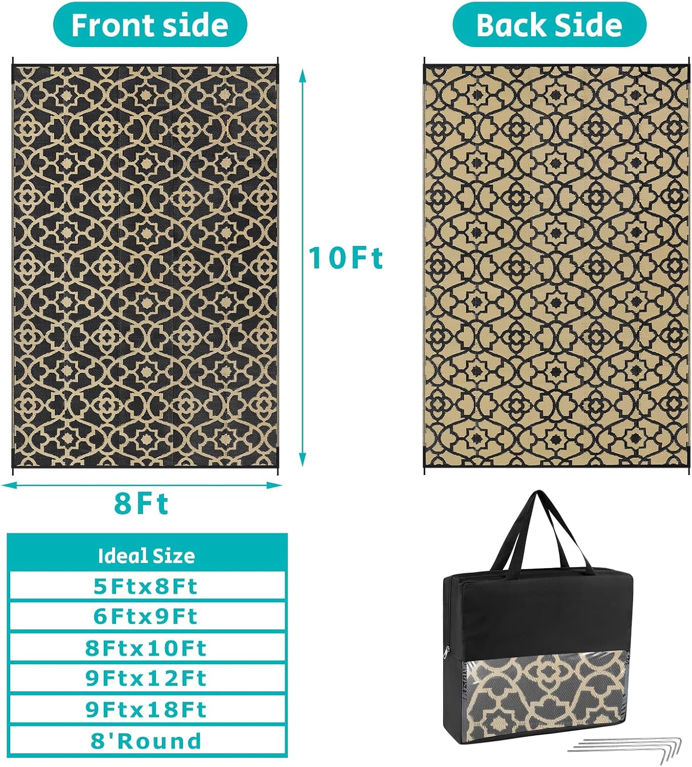 - XXL Large Reversible Outdoor Rugs: Featuring a classic moroccan pattern on both sides, this rectangular 8x10 ft outdoor area rug allows you to instantly refresh your patio, porch, backyard, deck, RV campsite. And this outdoor deck rug is reversible, two-sided design allows you to have two different looks,both sides can blend perfectly with nature and look very full and comfortable.