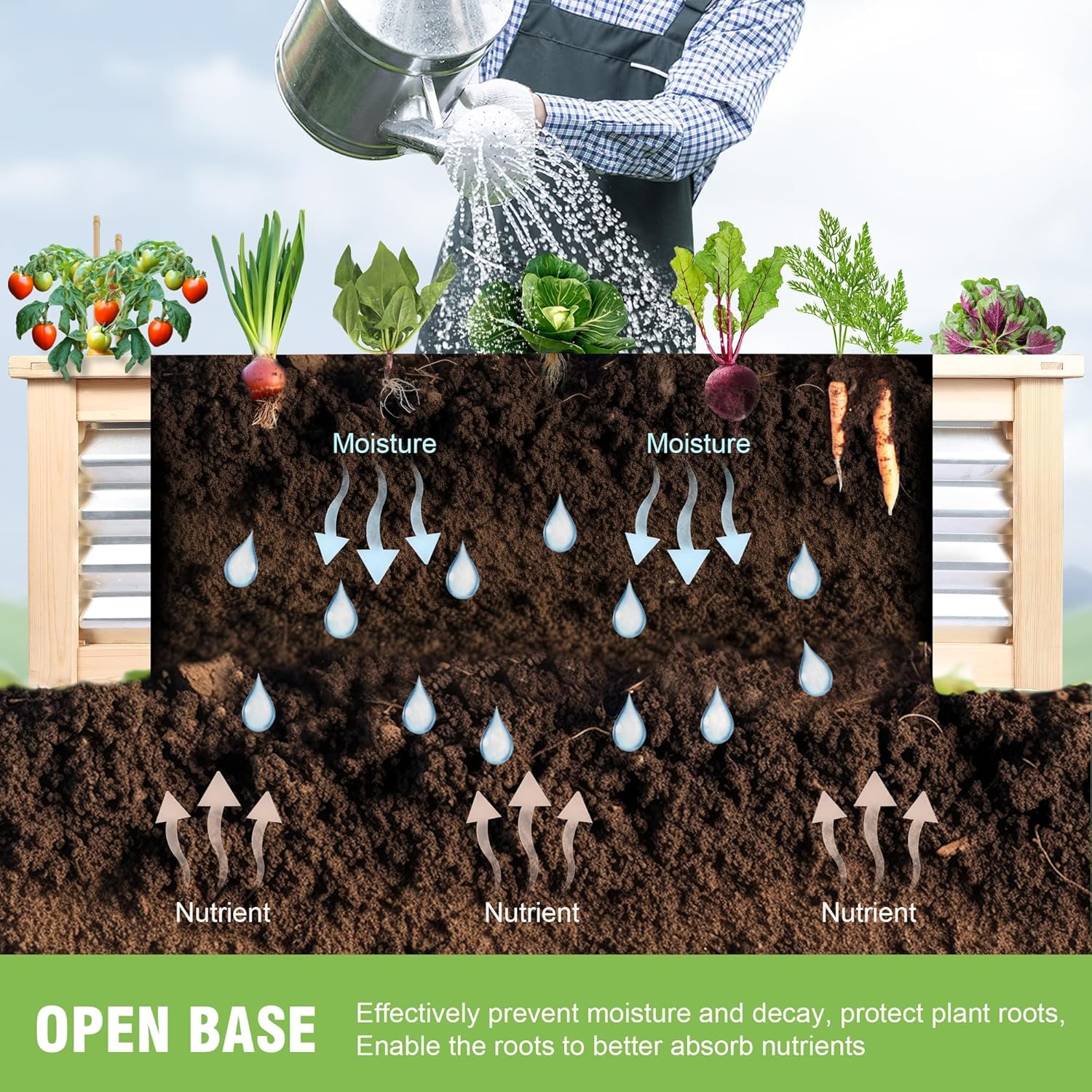 - UNIQUE DESIGN: Our cedar raised garden bed stand out from the competition with a distinctive design that combines a solid wood frame and corrugated galvanized iron on all sides. The integration of these materials creates an eye-catching aesthetic that sets our elevated garden bed apart from the rest.