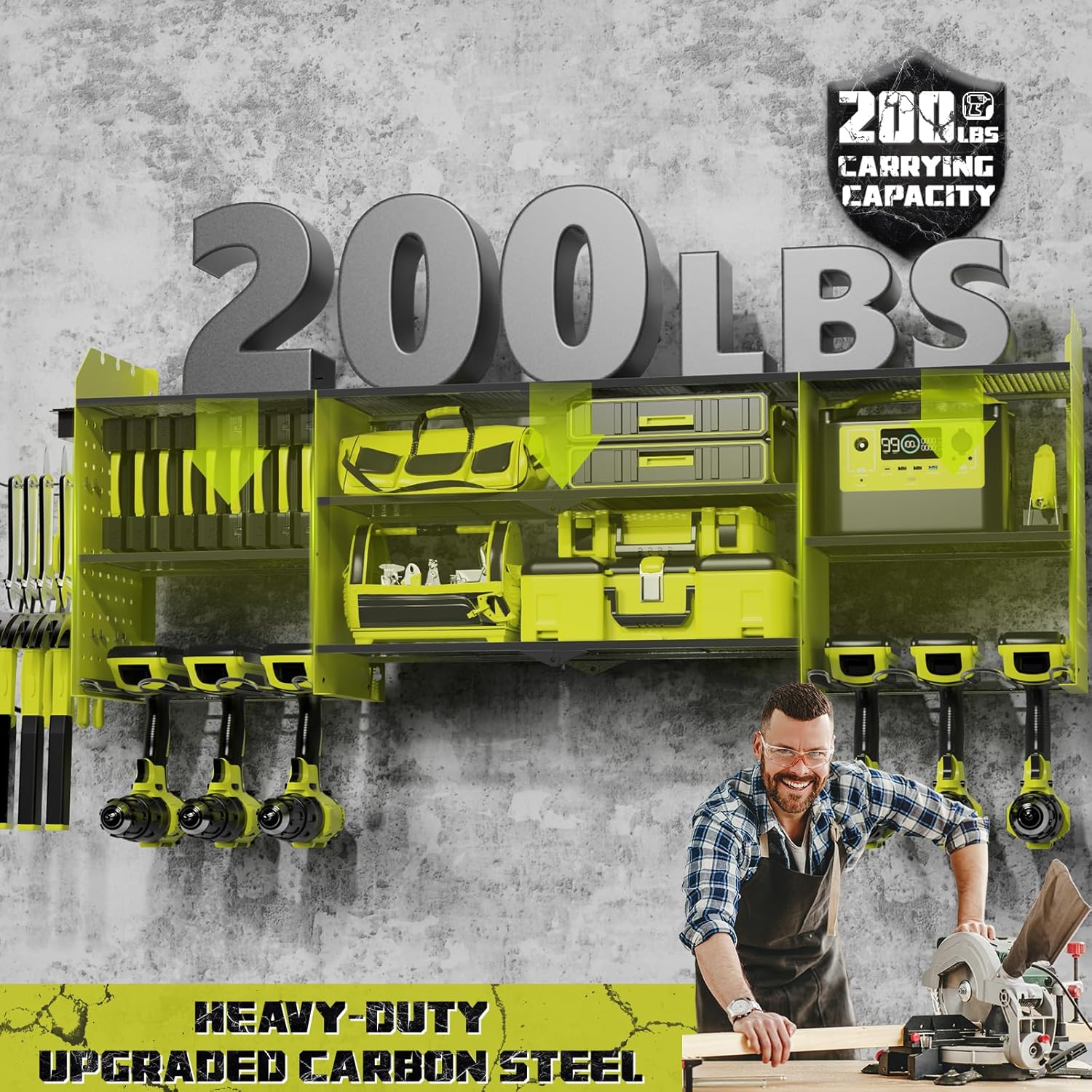 - Stable Structure with High Load Capacity: Made from heavy-duty upgraded carbon steel, this wall-mounted tool organizer is strong, stable, and resistant to deformation, supporting up to 200 lbs (40 lbs per shelf). It features easy assembly with included Phillips screws and screwdriver for a hassle-free installation