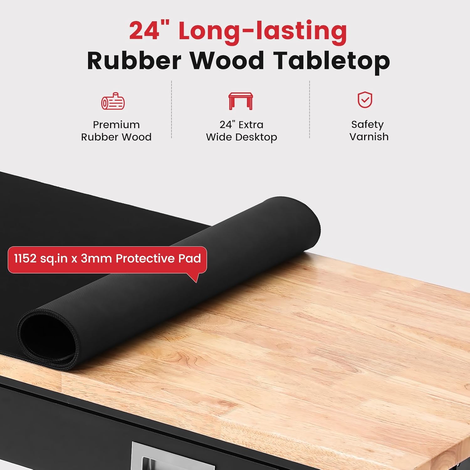 Work Bench with Storage Adjustable Workbenches with Drawer for Garage 48 Inch Rubber Wood Top Garage Workbench with Pegboard, Power Outlets for Woodworking,Home, Office, Workshop
