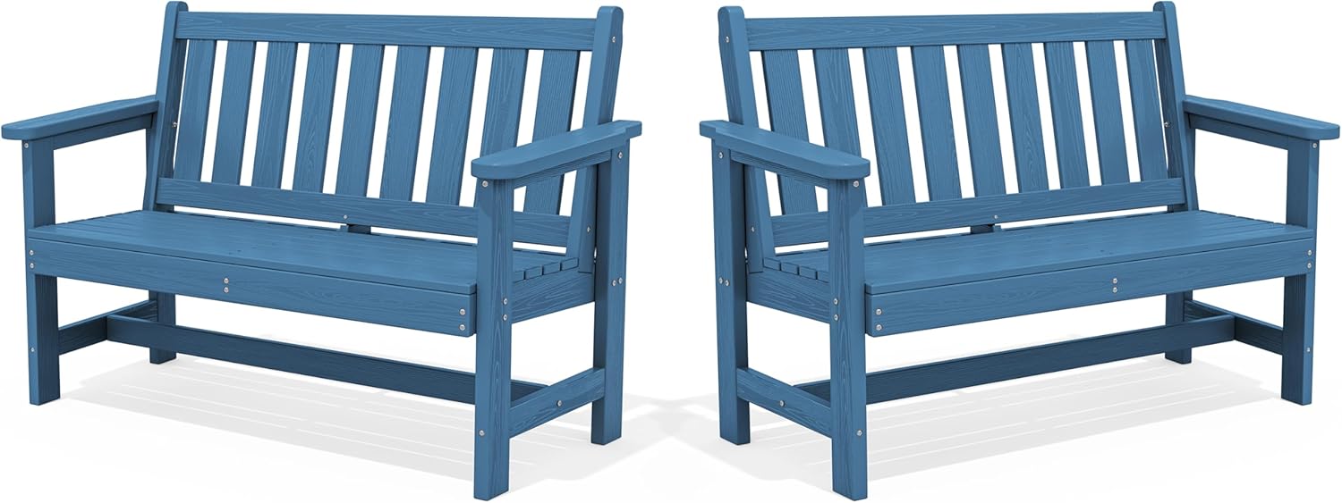SERWALL HDPE Outdoor Benches Weatherproof, 2-Person Garden Bench with 660 lbs Weight Capacity, Patio Benches for Outdoors, Garden, Porch, Park, Navy, 2 Pack