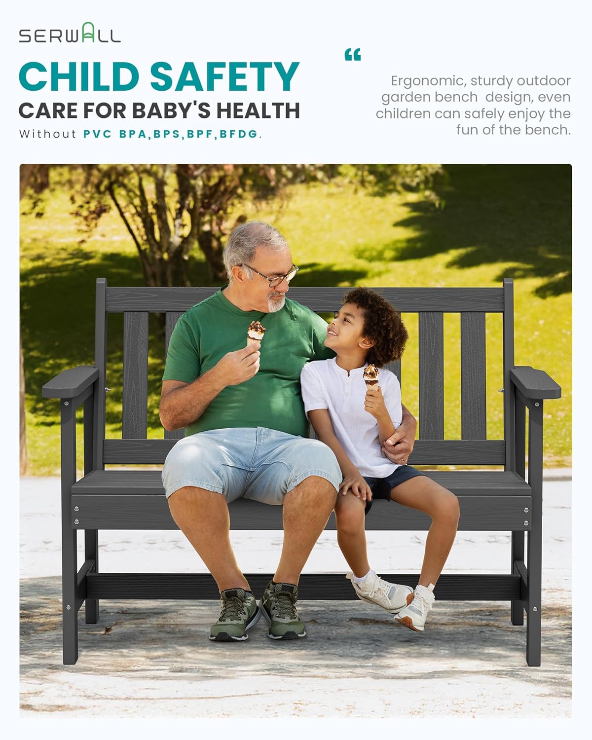 SERWALL Outdoor Bench, HDPE Outdoor Benches Weatherproof, 2-Person Garden Bench with 660 lbs Weight Capacity, Patio Benches for Outdoors, Garden, Porch, Backyard and Park, Grey, 2 Pack