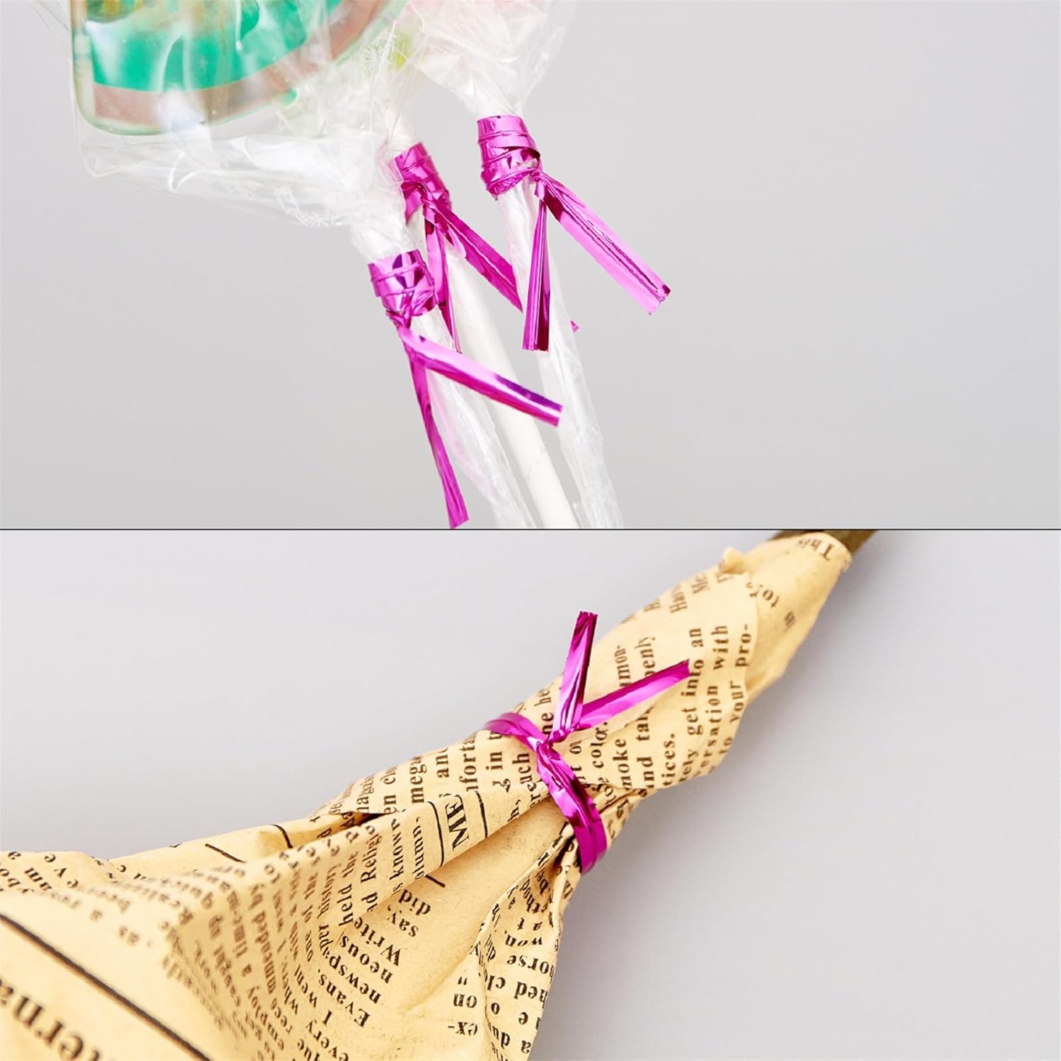 - Rose red metallic twist ties for tying your favors, Crafts, Bread, Cookies Bags, Candy, Candles, lollipop and Baked Goods! The Texture of metallic plastic twist ties is soft, easy to tie and untie.