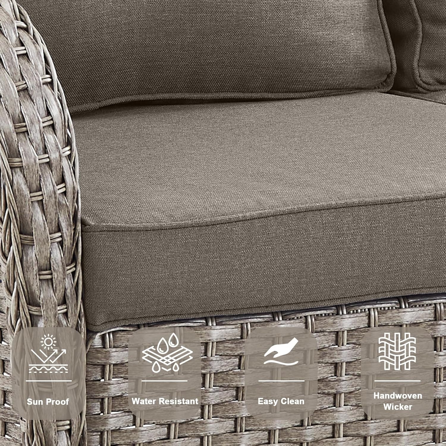 - 4.Beautiful And Durable: Relax in the beautiful outdoors with this perfect furniture set. Our patio wicker swivel chair and loveseat set with high quality foam cushion, comfortable and soft rebound good. The cushion cover is made of olefin outdoor water-resistant fabric. The seat and backrest are made of beautifully woven wicker coupled with ergonomic design, making it a classic upgrade for any porch or patio.