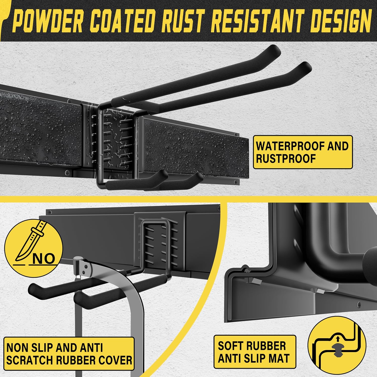 - VERSATILE TOOL RACK:Our Garage Storage System Isn't Just for Your Garage Tools;itโs Perfect for Arranging Garden Tools,Brooms,Hoses,and Even Sports Equipment Like Hockey Sticks And Ski Gear.This Multifunctional Storage Solution Maximizes Your Space.