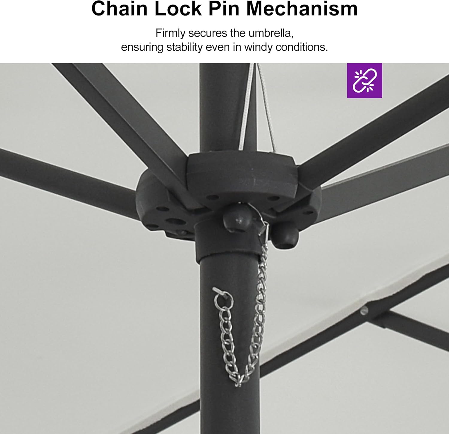 - Crank Design: The simple crank lifting system is equipped, enabling the convenient and rapid opening and closing of the patio umbrella. Additionally, an advanced chain lock pin is provided, ensuring the stability of the umbrella even in windy conditions