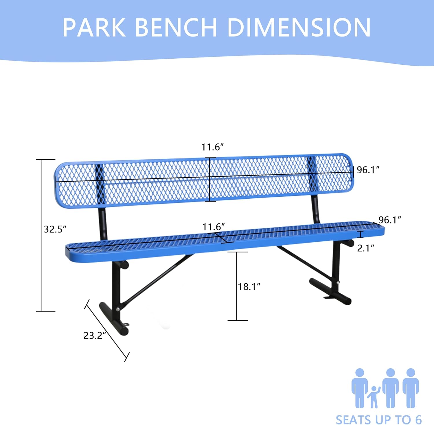 4/6/8 Feet Park Bench for Outside Heavy Duty Metal, Garden Benches Outdoor Bench with Backrest & Portable Frame, for Shopping Malls Stores Parks Patios Decks, Blue