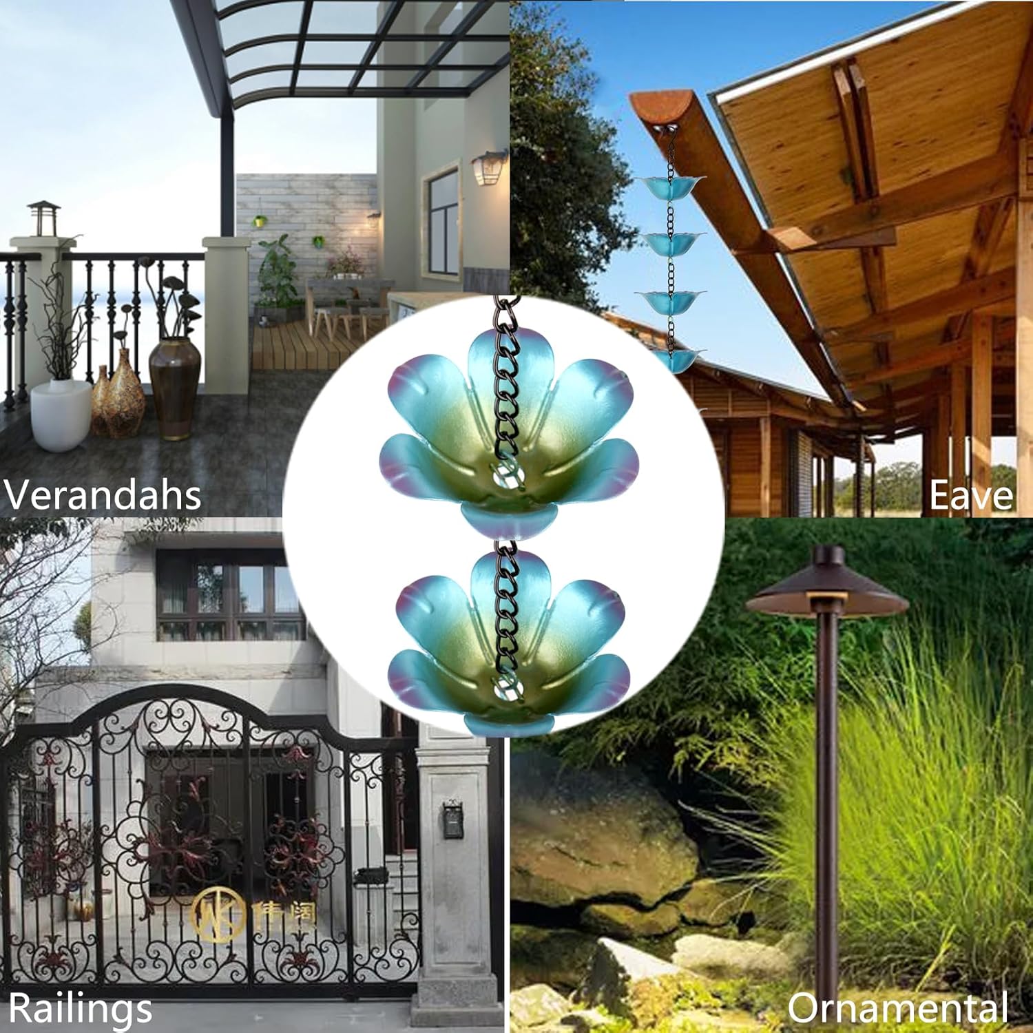 - PERFECT GIFT CHOICE: This Outdoor Flower Rain Chain is an ideal gift for your friends and family, practical and artistic at the same time. Whether it's a birthday, holiday or other special occasions, it can convey your care and blessings to them, making the recipient feel warm and surprised.
