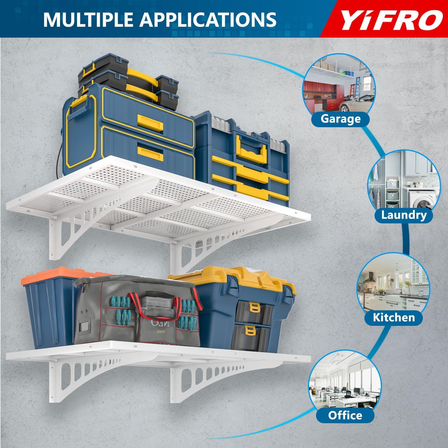 - HEAVY DUTY CONSTRUCTION: YIFRO garage wall shelving takes its cues from architectural frame construction, with a 2x3 ft individual bracket load capacity of 250 lbs. and a total of 1000 lbs. for 4 shelves, which makes it easy to store most of the items in your garage.