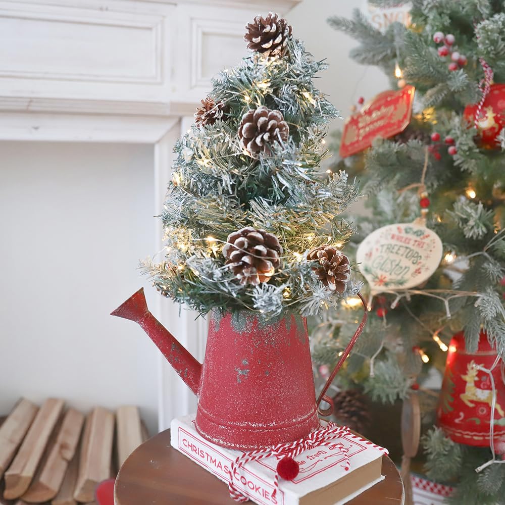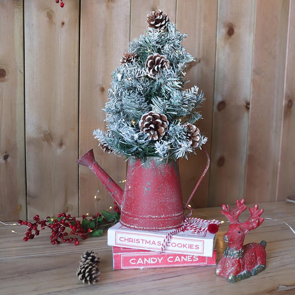 - COMPACT YARD DECOR - Measures11*5.5*6.5inch. Use this fun and vintage watering can indoors and outdoors for house plants, potted flowers, orchids, herbs, bonsai and more. It can also become a pure christmas decoration to liven up your living spaces