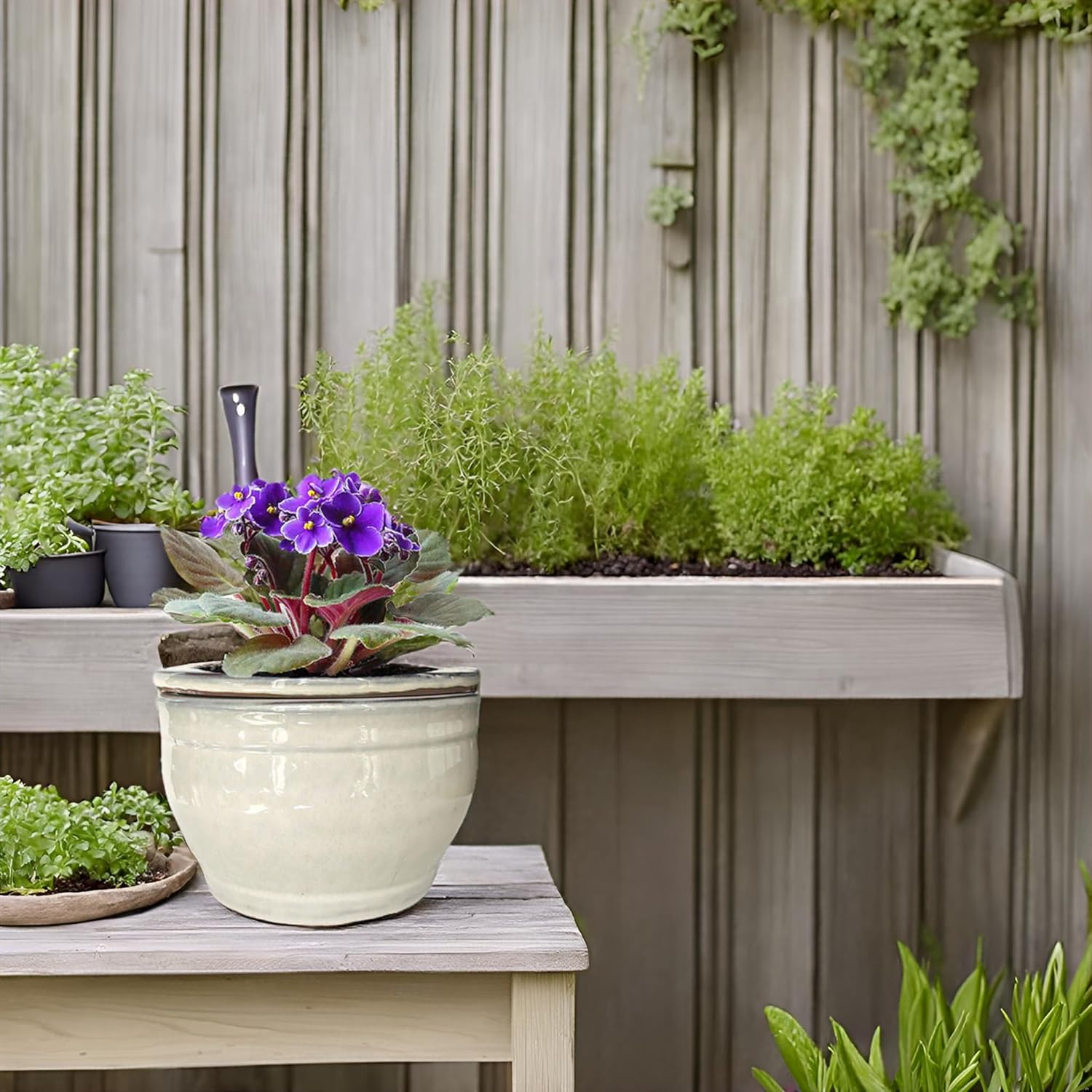 African Violet Pots Self Watering Round Ceramic Violet Pot (White, 6 inch)