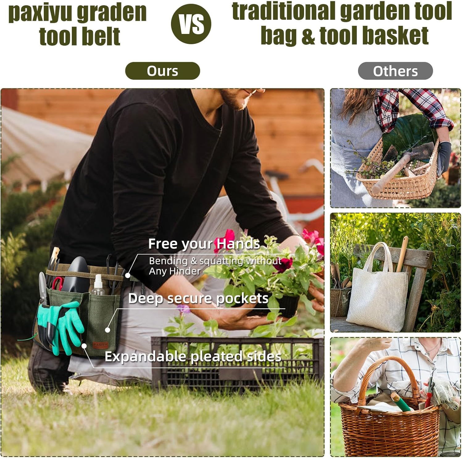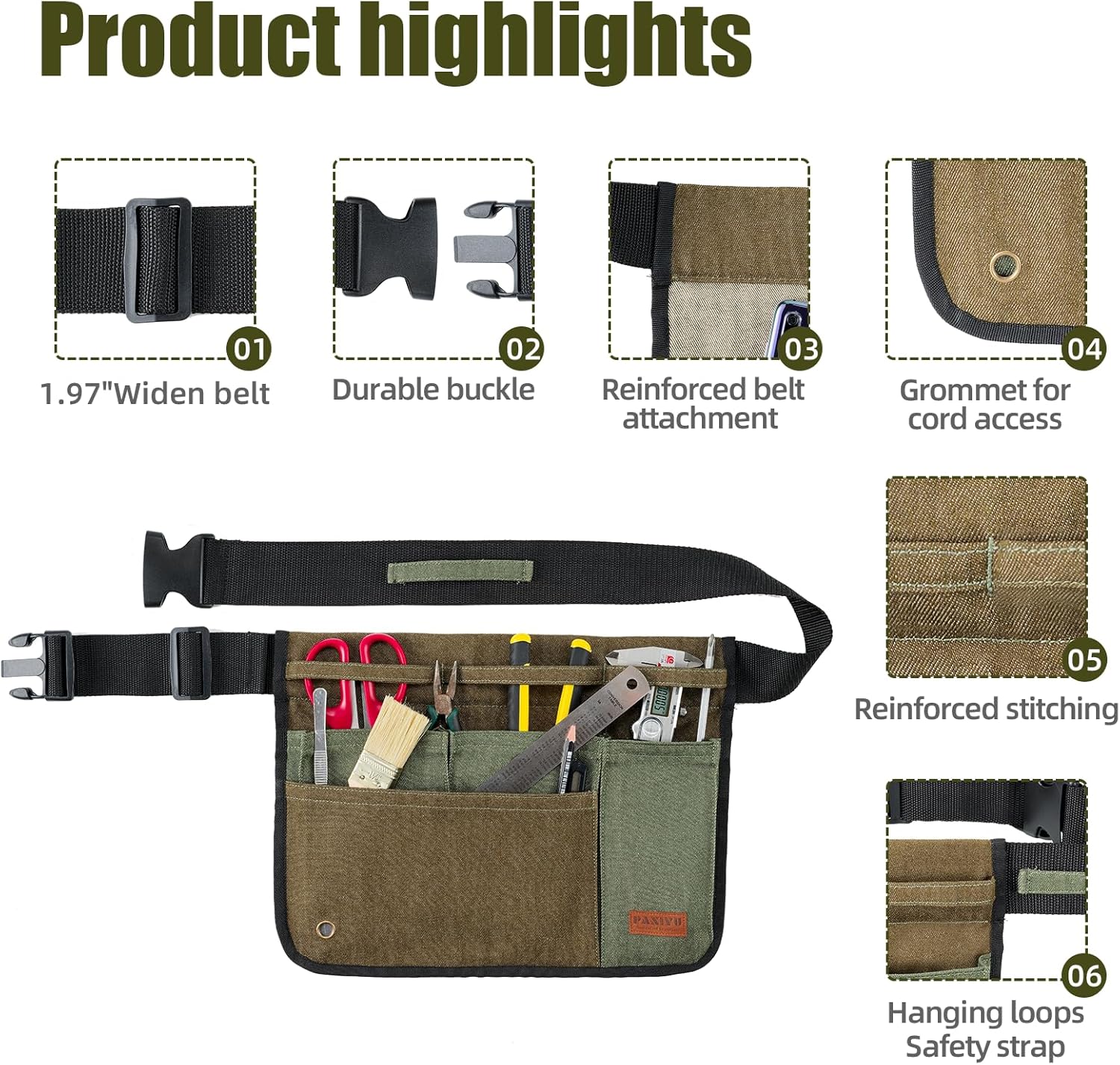 - 【Lightweight Yet Sturdy for Long Work Hours】: Designed for comfort, the cushioned waistband evenly distributes weight across the hips, reducing strain during extended use. The sturdy construction supports heavier tools while remaining lightweight for easy movement in gardening or woodworking