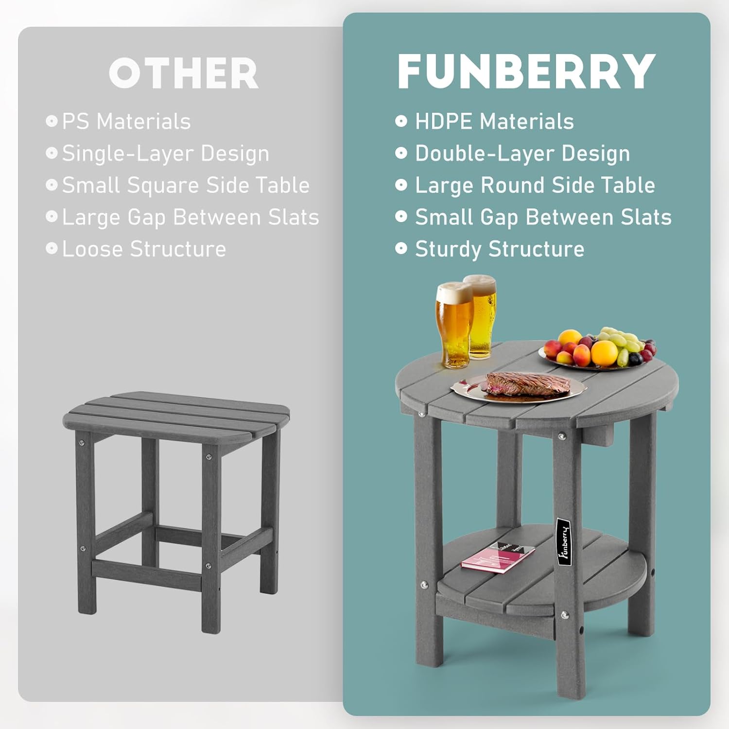 FUNBERRY Outdoor Adirondack Side Table Set of 2, 2-Tier Patio End Tables, HDPE All Weather for Outside