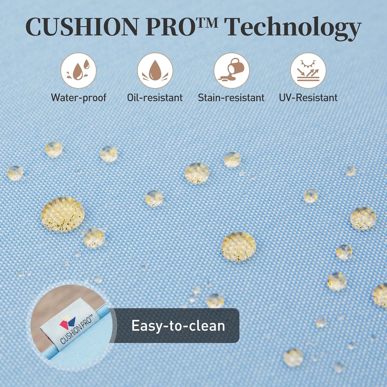 - ADVANCED CUSHION FABRIC TECH: Experience the happiness of easy maintenance with the SUNSHINE VALLEY patio chairs. The fabric of this patio sofa is made with patent CUSHION PRO technology. It has excellent waterproof, oil-proof, and stain-resistant properties making the dirt easily wiped down. It can really meet your outdoor leisure needs