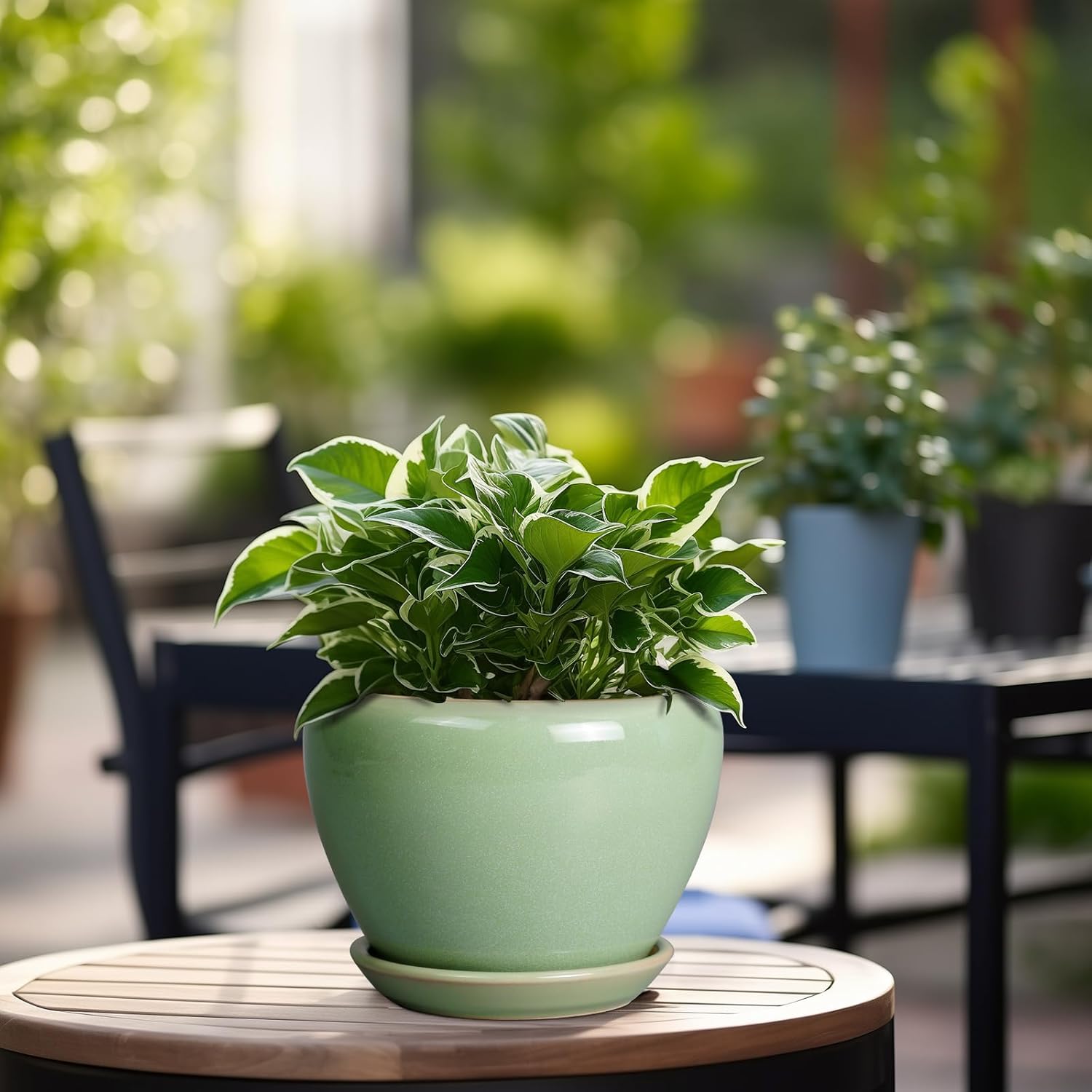 - Modern Design of Green Plant Pot: A modern glaze planter for outdoor plants looks simple, clean, and elegant. Ideal for suitable tables, living room, bedroom, patio and garden