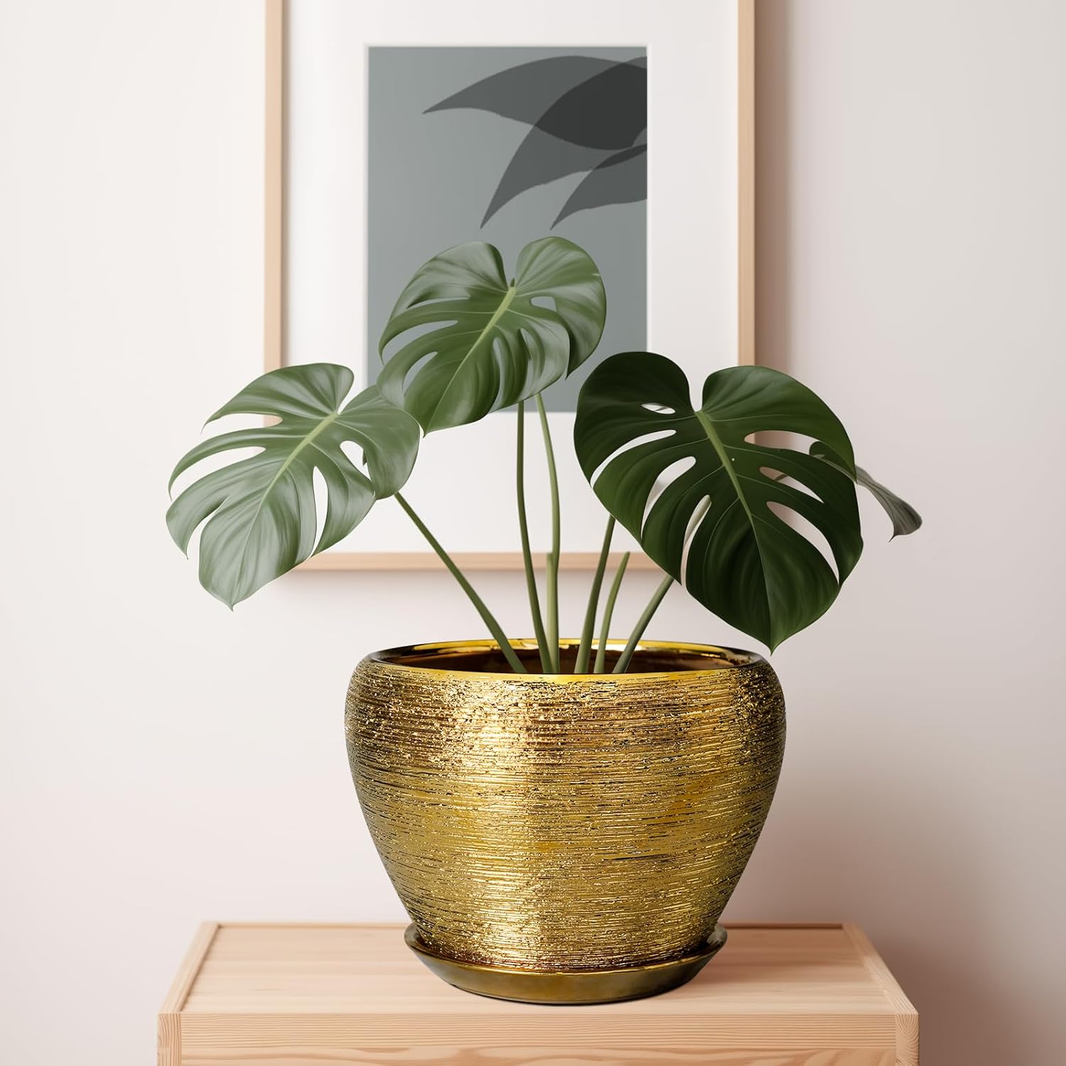 - Modern Design of Gold Planter Pot: A modern glaze planter for outdoor plants looks simple, clean, and elegant. Ideal for suitable tables, living room, bedroom, patio and garden