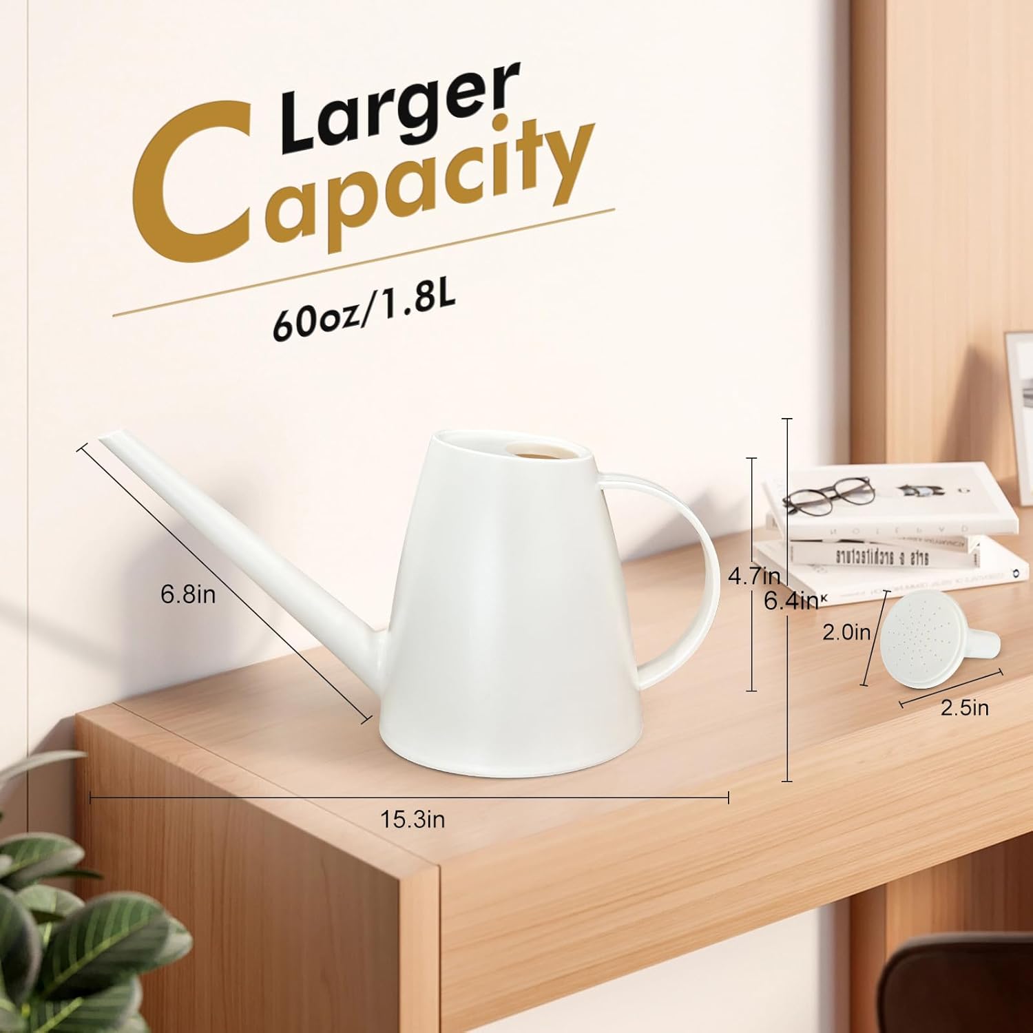 Watering Can for Indoor Outdoor Plants, Modern Small Watering Cans with Removable Nozzle, Long Spout Watering Can for Indoor Bonsai Plants Garden Flowers 1/2 Gallon 1.8L 60OZ (White)