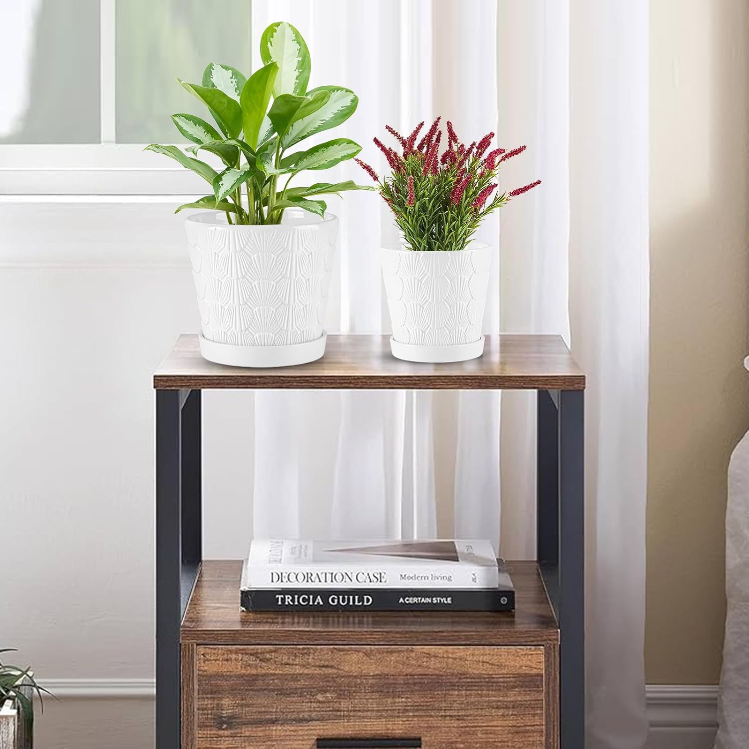 EFISPSS Ceramic Plant Pots, 5+6 Inch Pots for Indoor Plants, Planters with Drainage Holes and Tray, Modern Flower Pots Gardening Home Desktop Office Windowsill Decoration Gift Set of 2 - White