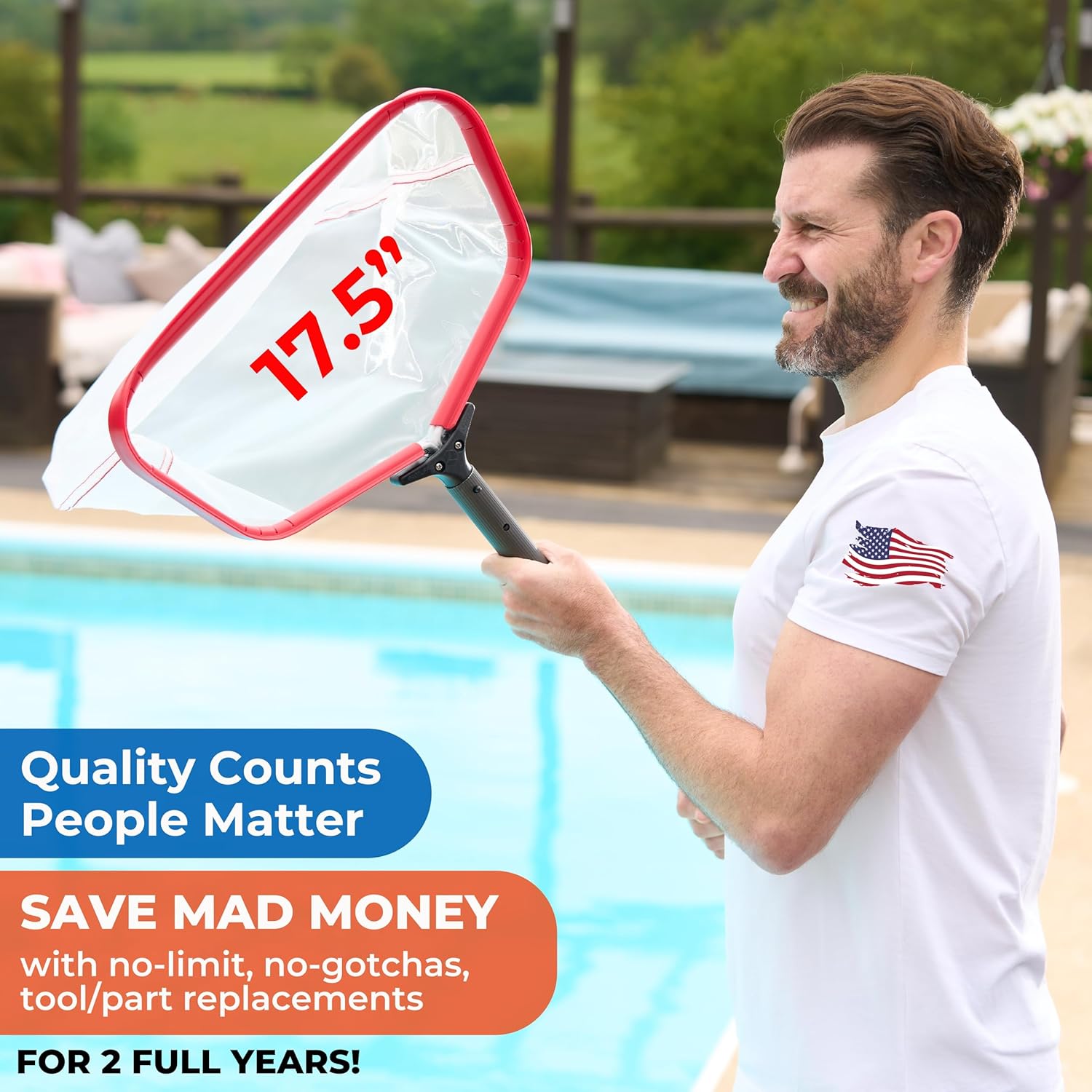 - 2 YEAR REPLACEMENT 490 PROMISE – Enjoy complete peace of mind with our 2 year replacement warranty. Unlike other pool cleaning tools, we provide free replacements of our pool skimmer head & tools ensuring you get the ultimate peace of mind on your swimming pool accessories for inground pools and hot tubs.