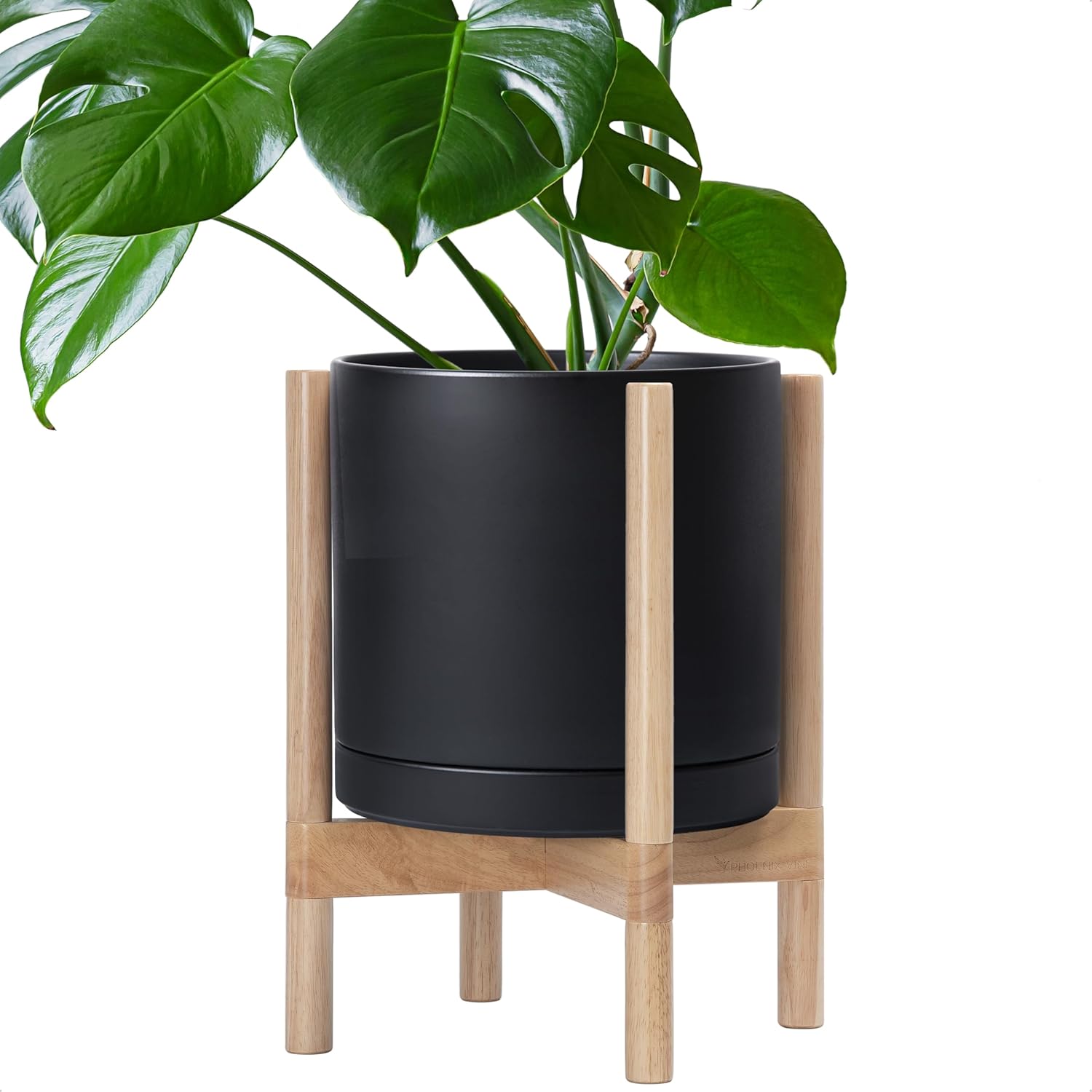 - A Complete Set: Mid-century ceramic planter, combined with a natural color, sculptural, solid wood stand that match perfectly together and looks great in anywhere.