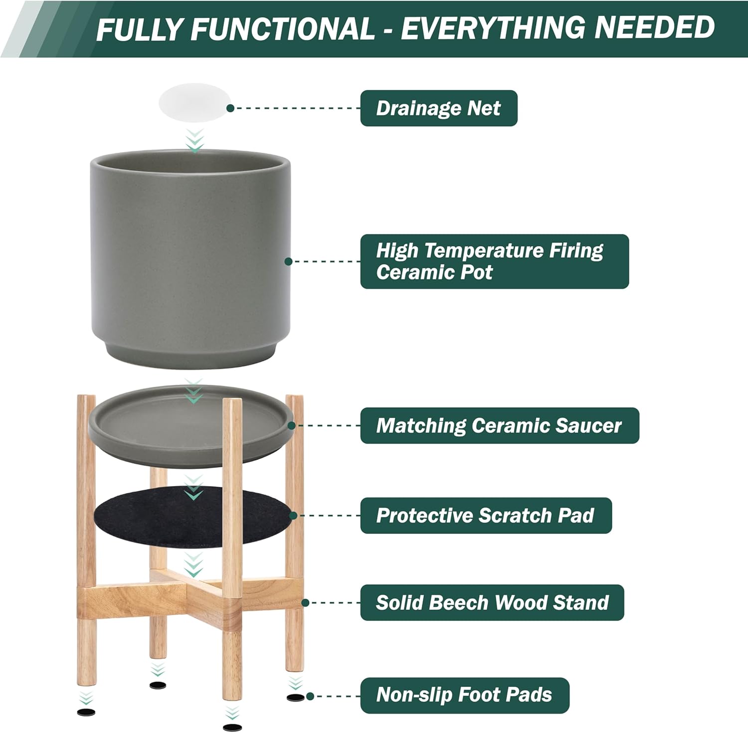 - A Complete Set: Mid-century ceramic planter, combined with a natural color, sculptural, solid wood stand that match perfectly together and looks great in anywhere.