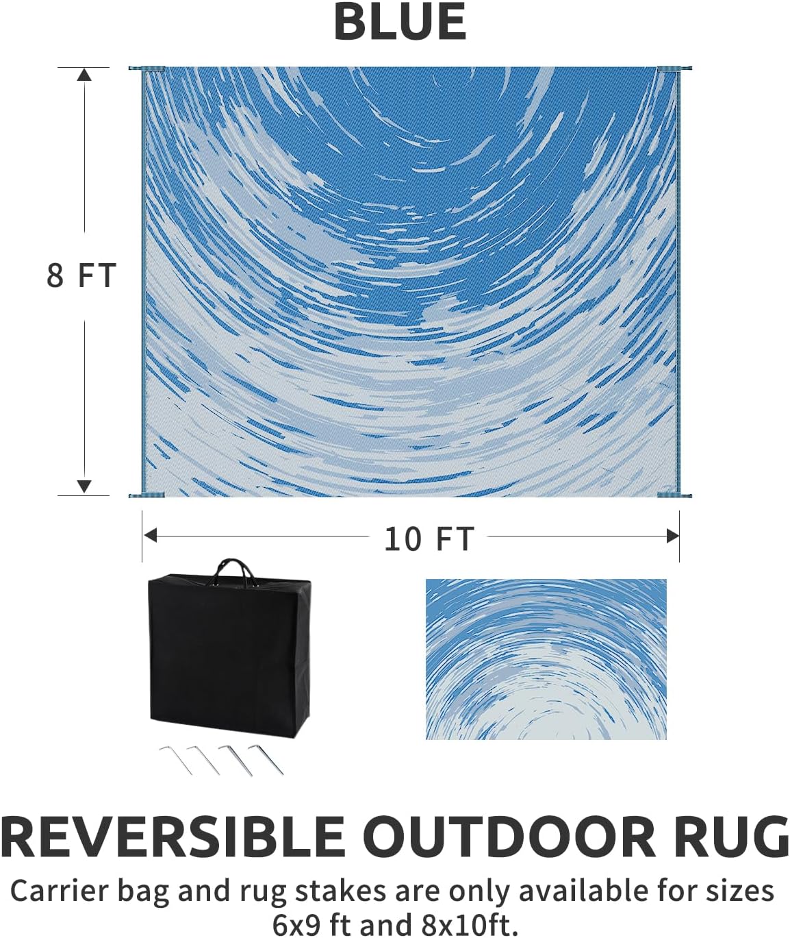 - RV traval&Camping: This camper must haves outdoor rug is ideal for picnics, gatherings, and RV trips! The lightweight outdoor camping carpet with foldable lines is easy to carry and saves space. Includes an extra carry bag and rug stakes for 6x9 ft, 8x10 ft and 9x12 ft. Grass-friendly, durable, and easy to clean, this outdoor rug enhances outdoor adventures.