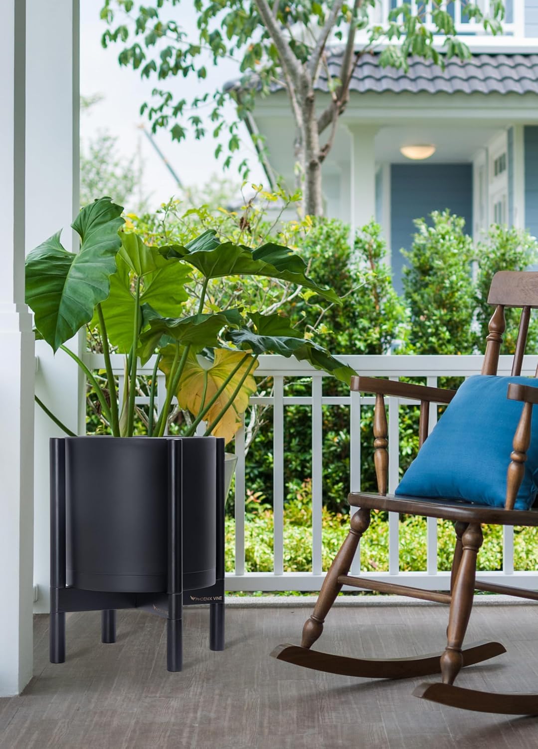 - A Complete Set: Minimalist plastic planter, combined with a sculptural, solid wood stand that match perfectly together and looks great in any home.
