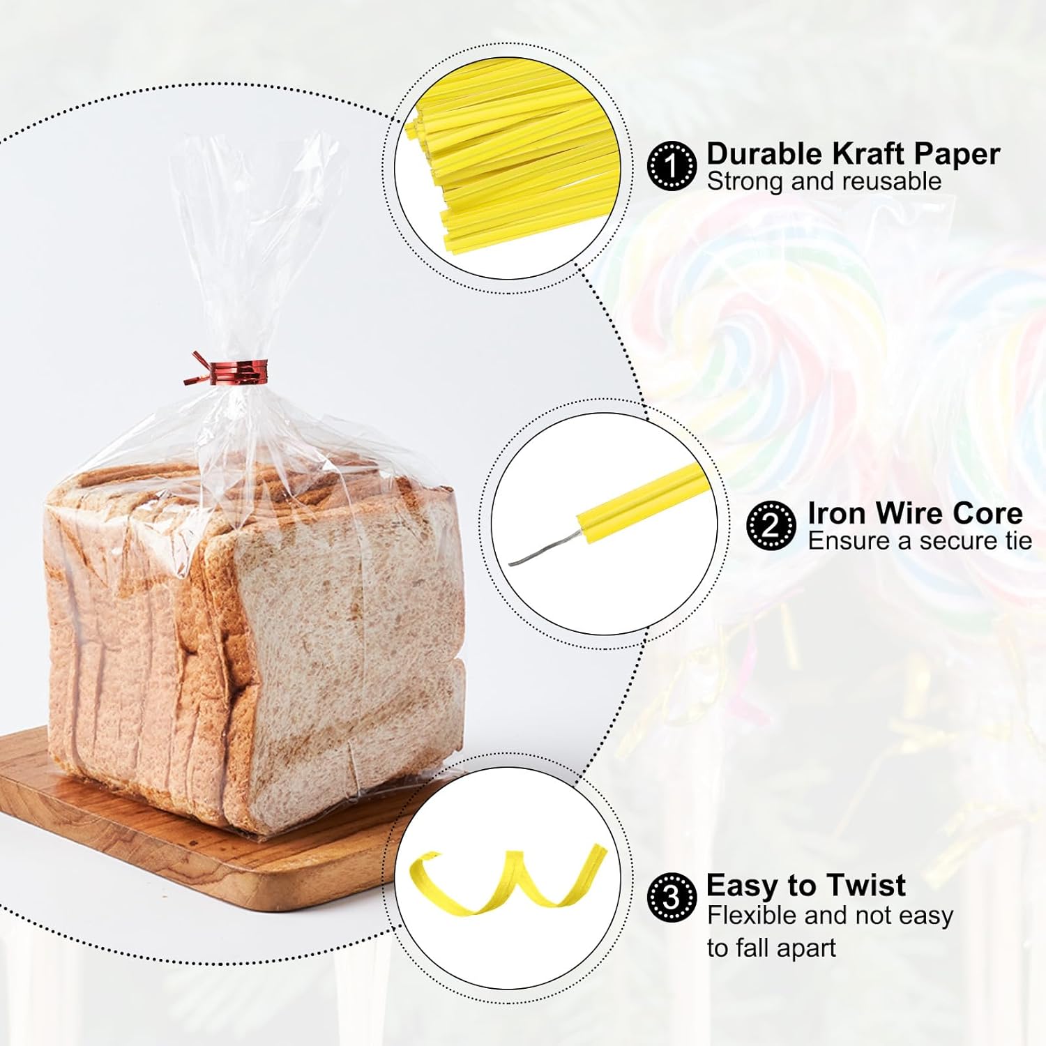 HARFINGTON 1000pcs Bag Twist Ties 3.5" Reusable Kraft Paper Twist Ties Wire Cable Ties for Party Bread Candy Cake, Yellow