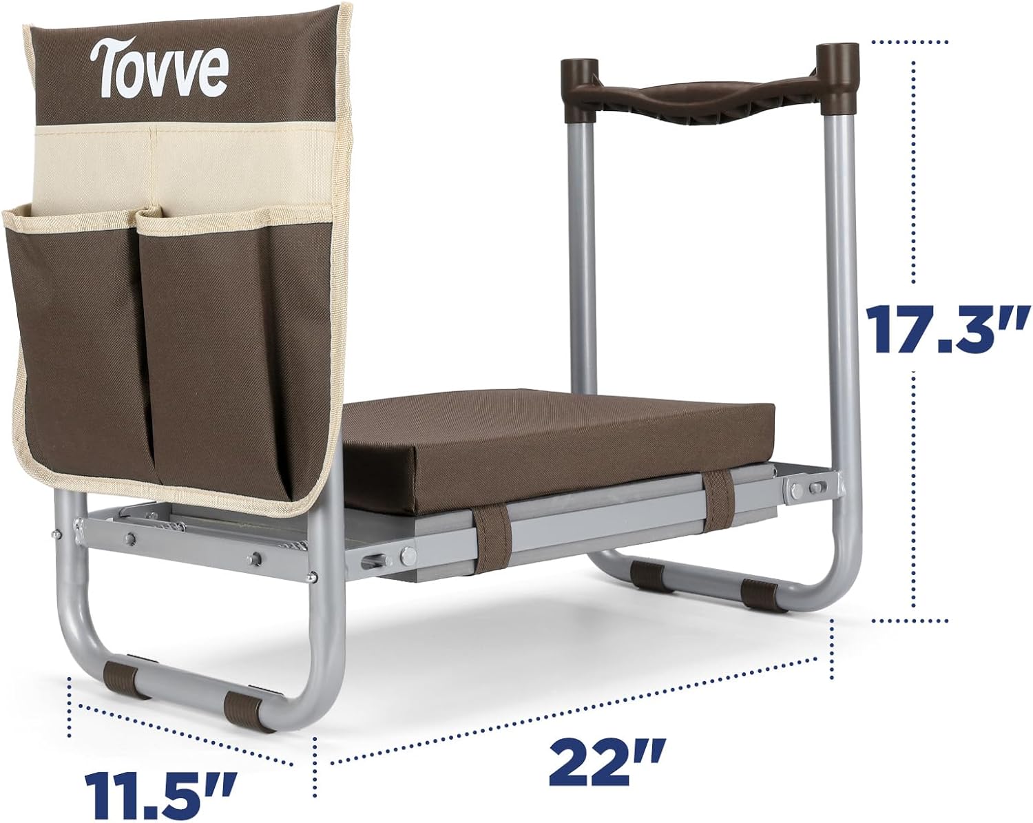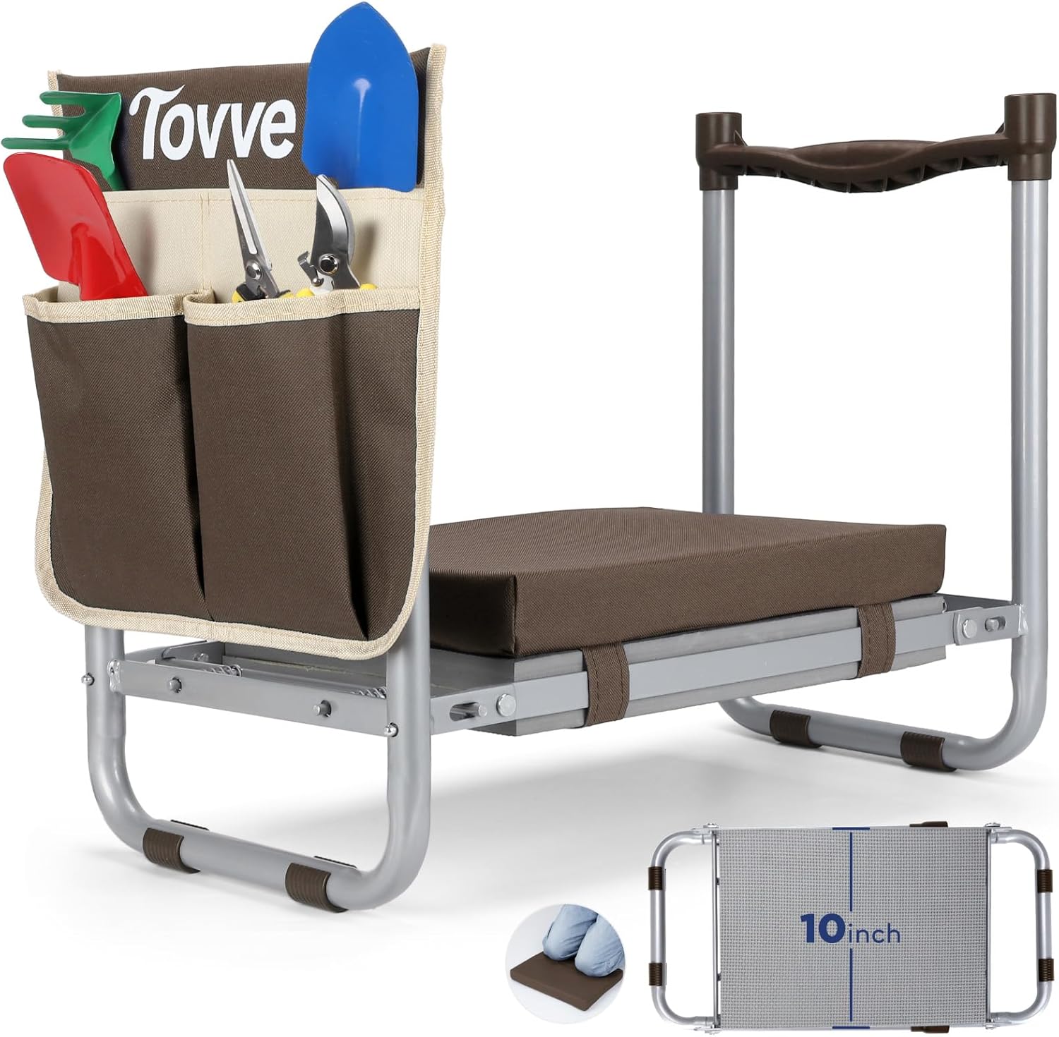 Foldable Garden Kneeler and Seat, Heavy Duty Garden Stool with 10" Wide Detachable Kneeling Pad, Portable Garden Bench Chair with Large Garden Tool Bag, Gardening Gifts for Women, Seniors, Mom
