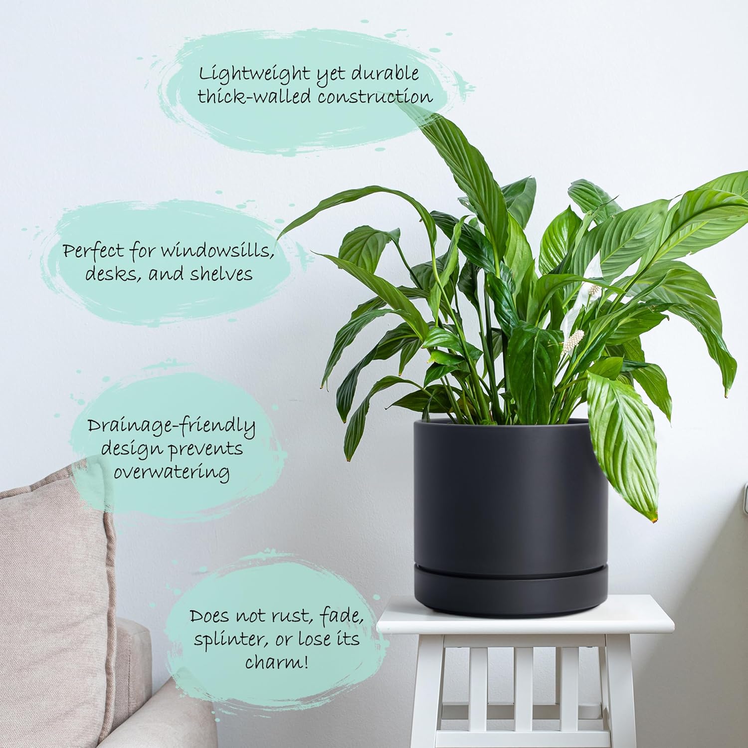 - Durable Build: Plant Pot Made from thick-walled, high-quality plastic with a smooth, ceramic-like finish. Built to last, ensuring long-term use for indoor houseplants.