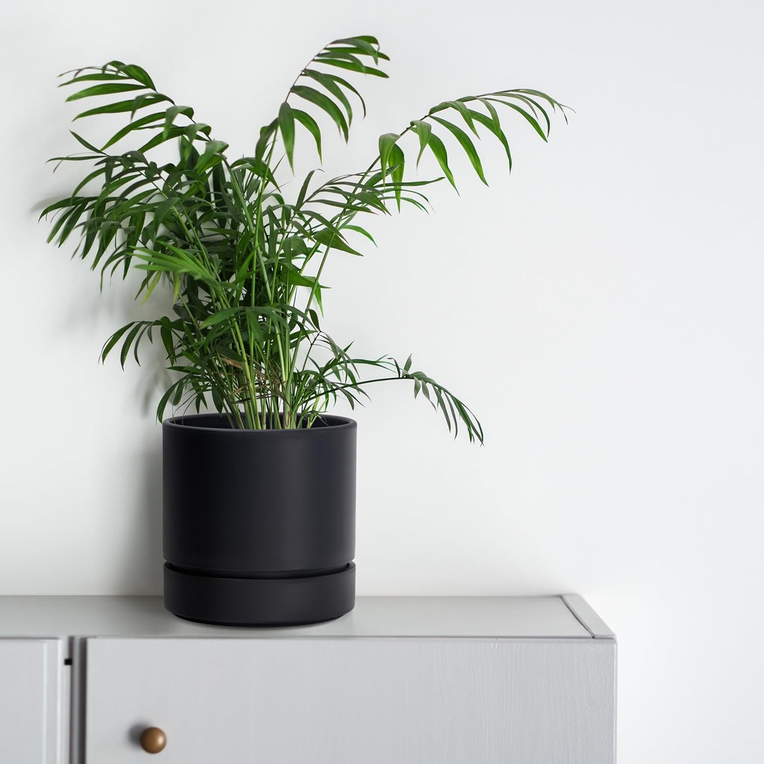 Phoenix Vine 6 Inch Planter Pot with Drainage Hole & Saucer, Deep Water Catch Tray, Straight Cylindrical Round Pot for Plants, Matte Black, Pack of 3, 23-C-S-3
