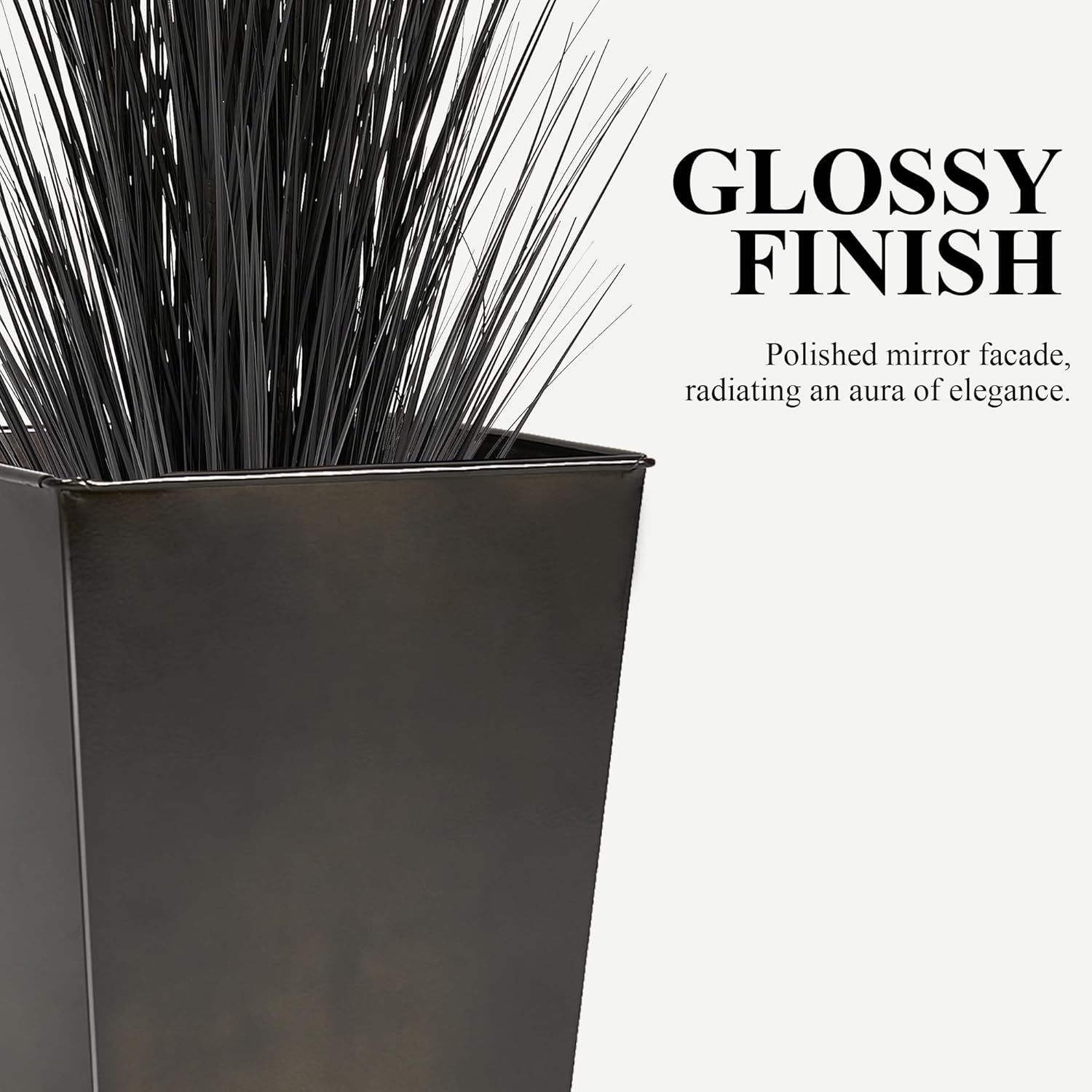 WORTH Garden 28" Large Metal Glazed Planter Set of 2, Luxurious Glossy Finish Black Tall Square Tapered Steel Plant Pots, Decor Flower Pot Indoor & Outdoor, Drainage Hole & Dual-Purpose Plant Saucer