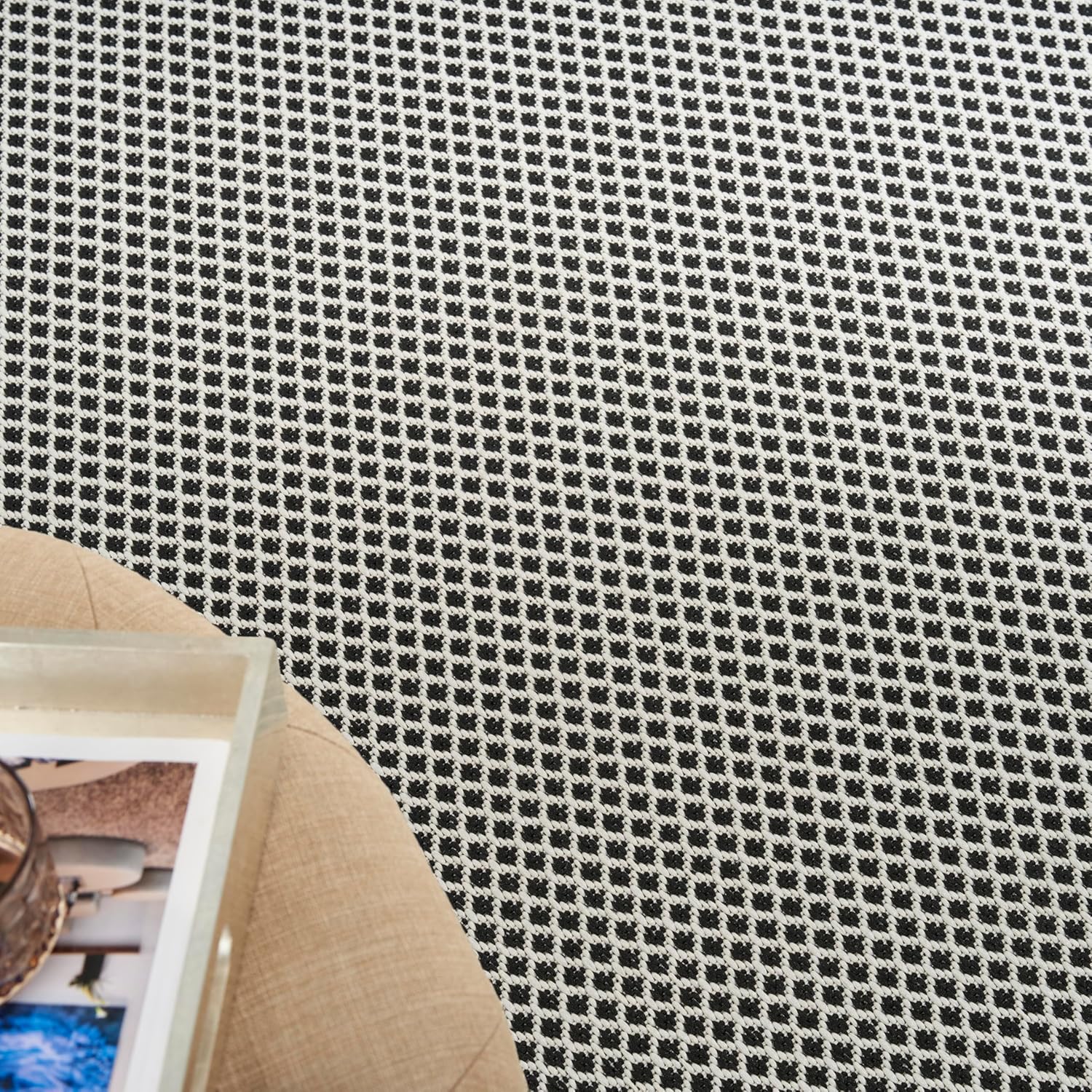 Nourison Home Courtyard Black White 10' x 14' Area Rug - Easy Clean, Non Shedding, Bed Room, Living Room, Dining Room, Kitchen (10' x 14')