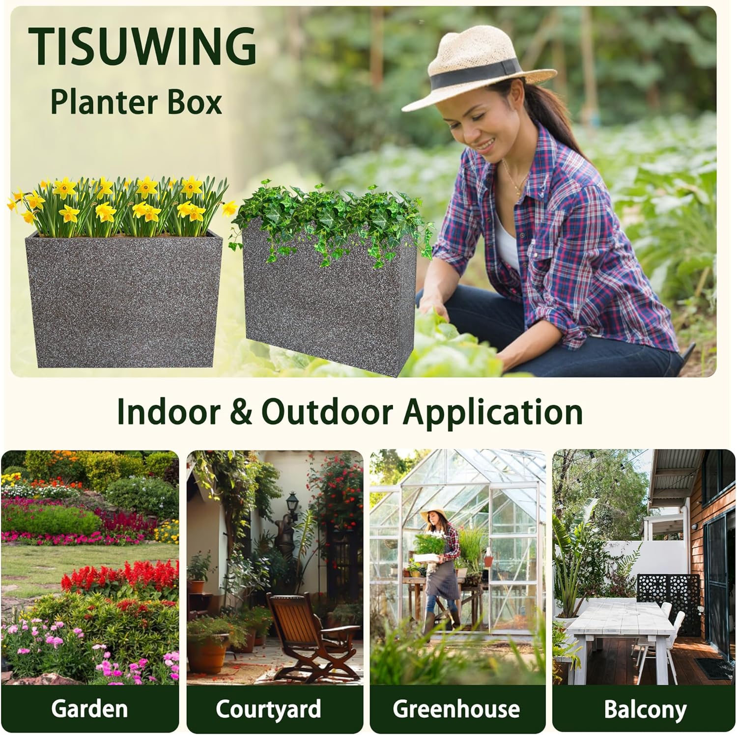 - [Wide range of uses]: The tall planter box is suitable for outdoor/indoor decoration with its modern style, adding a touch of beauty to garden, entrance, front porch, balcony, patio, deck or indoor hall.