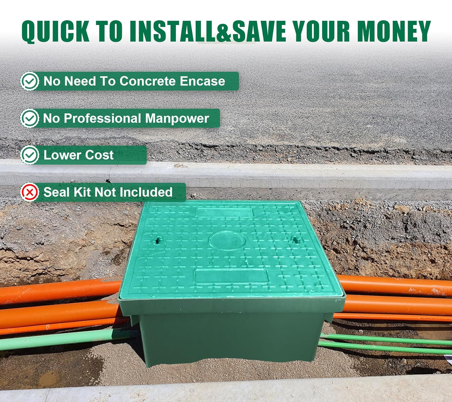 - 【Notes】The size of square deep distribution pull box is 24Lx24Wx24H inches, As the height, length and width differ for each project, it is important that cable draw pits can be adapted to each situation. Please confirm size before ordering