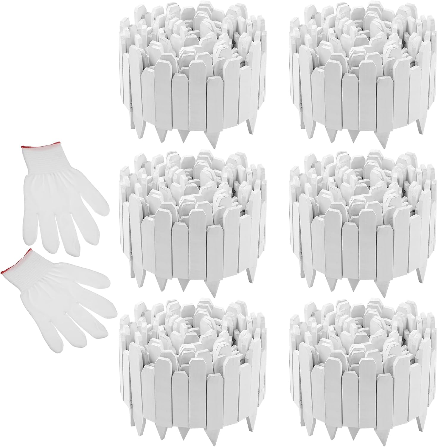 - Sufficient Quantity and Suitable Size: you will receive 6 packs of garden wooden fences with a pair of gloves, 10 inches in height above ground, stakes are 6 inches in height, 4 ft in total length, total length of 6 combinations 24 ft; Designed for dividing or defining boundaries; The quantity is enough to meet your daily and replacement needs