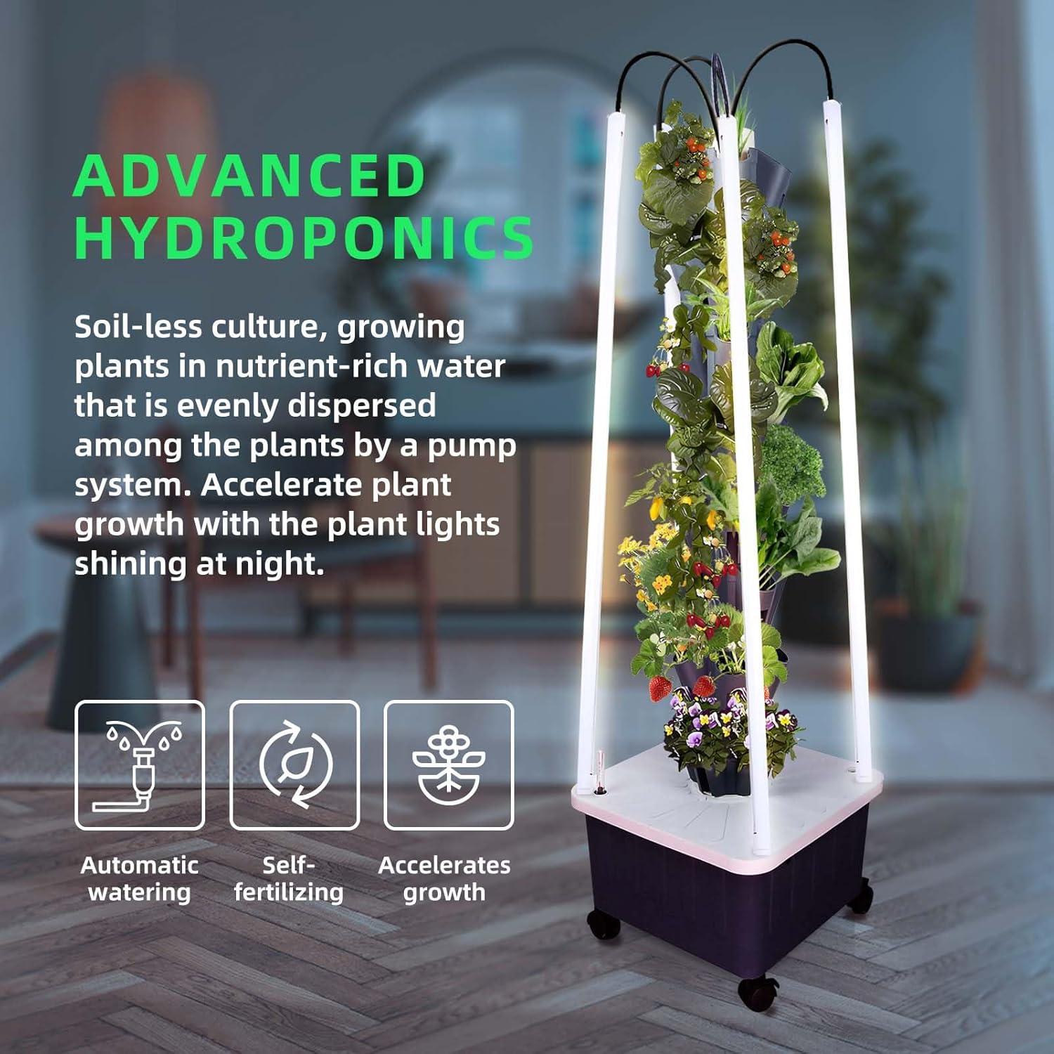 - Hydroponic Growing System Technology: 40 plants can be grown vertically with top-down water circulation watering system to increase oxygen and save up to 95% water compared to traditional growing, equipped with plant lights and casters for easy mobility, occupies less than 2 feet of space, space-saving, can be your kitchen garden.