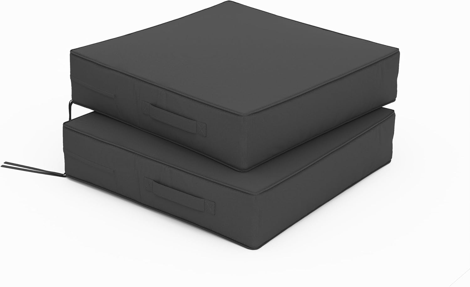 Patio Chair Cushions 19 X 19 X 4 Inch Waterproof Outdoor Seat Cushions for Patio Furniture, Outdoor Sofa Couch Pads with Ties & Handle, Set of 2, Grey